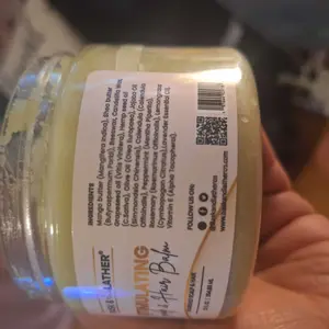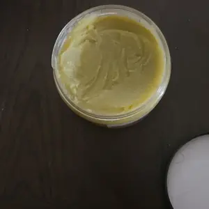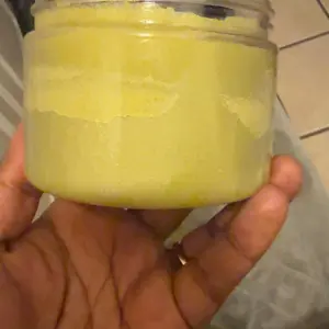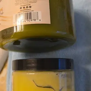 The smaller jar is the first jar that I received and as you can see as much lighter and it was Bumpy and lumpy and the second jar is the bigger jar which is more smooth and creamy and that’s better.