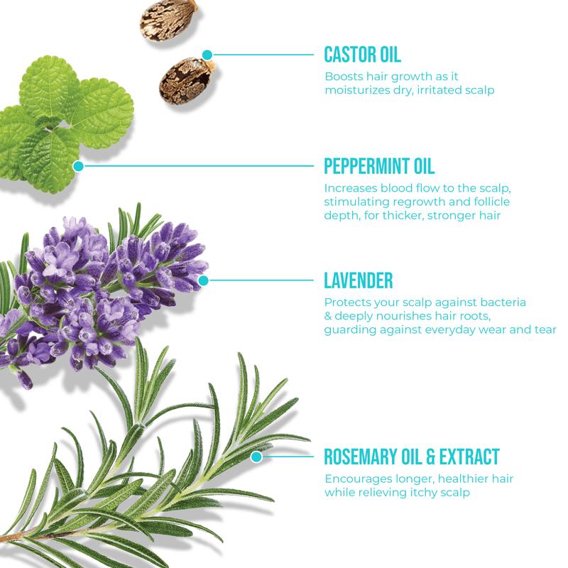 (Rosemary) Leaf Oil, Disodium EDTA, 1,2-Hexanediol, Hydrolyzed Corn Starch, Glyceryl Glucoside, Biotin, Sucrose,