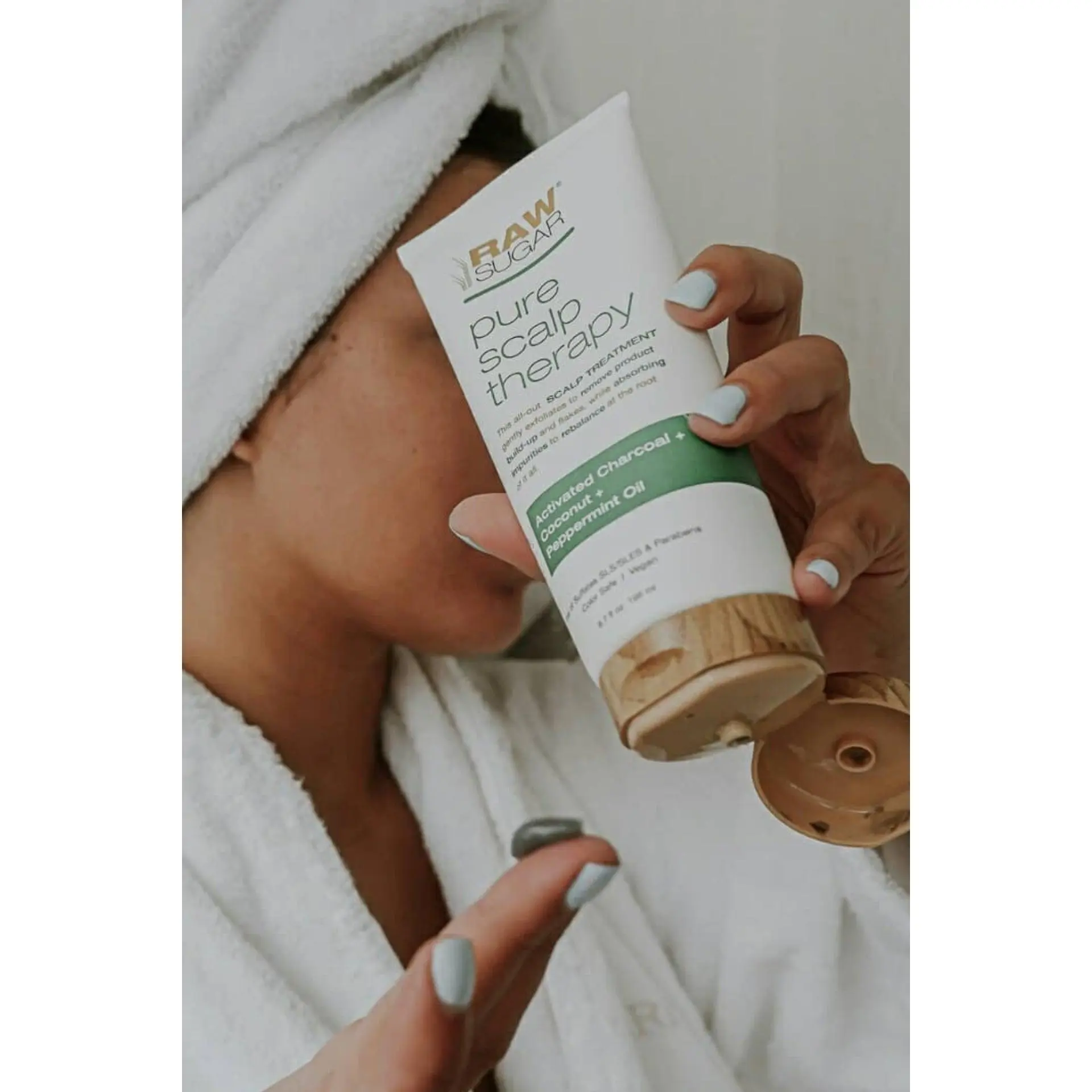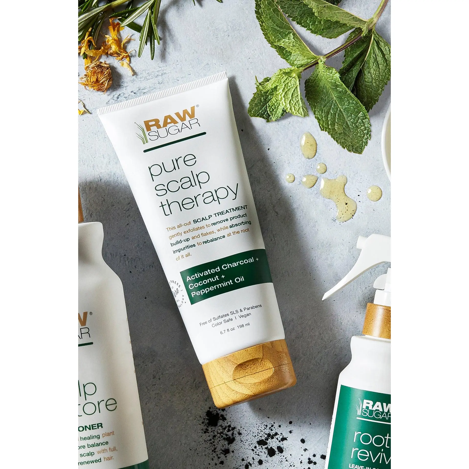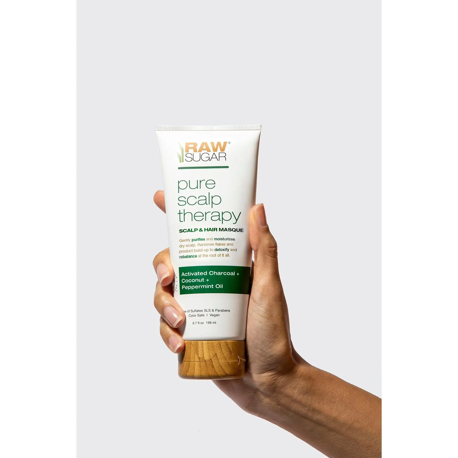 Love your scalp from the outside in with Raw Sugar's Pure Scalp Therapy Scalp & Hair Masque. Crafted with a refreshing blend of activated Charcoal Powder, Coconut Oil and Peppermint Oil, in 5-10 minutes this masque works to gently exfoliate and purify without stripping your scalp and hair of the natural oils it needs to shine. Hair is left nourished, rebalanced and purified all at once, leaving you feeling super-clean, slightly tingly, and all-out beautiful.