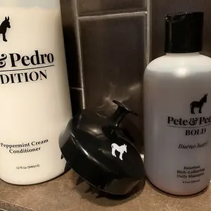 The Pete & Pedro Clean, Condition, & Scalp Massager Brush Kit is hands down the ultimate bueno shower trio! This powerful kit combines our Scalp Massager Shampoo Hair Brush, CLEAN Deep Cleansing Shampoo, and Peppermint Cream Conditioner to deliver a deeper clean, an invigorating peppermint tingle, and total scalp revival—all for just $25 (regularly $44).