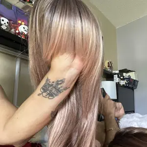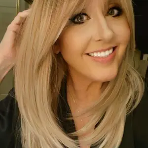 This girl is perfection right out of the bag! Style is beautiful, the bangs just right and she literally gets five stars from everyone I've shown! The best part is she fits my big head, 23.25"! She's a Winner!🙌 Only con: Roots too dark. Mixed blonde