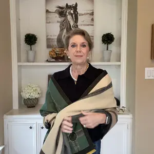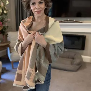 Beautiful colors, soft and very large size! Perfect for the movie theatre, restaurant or work. Very happy with this beautiful scarf!