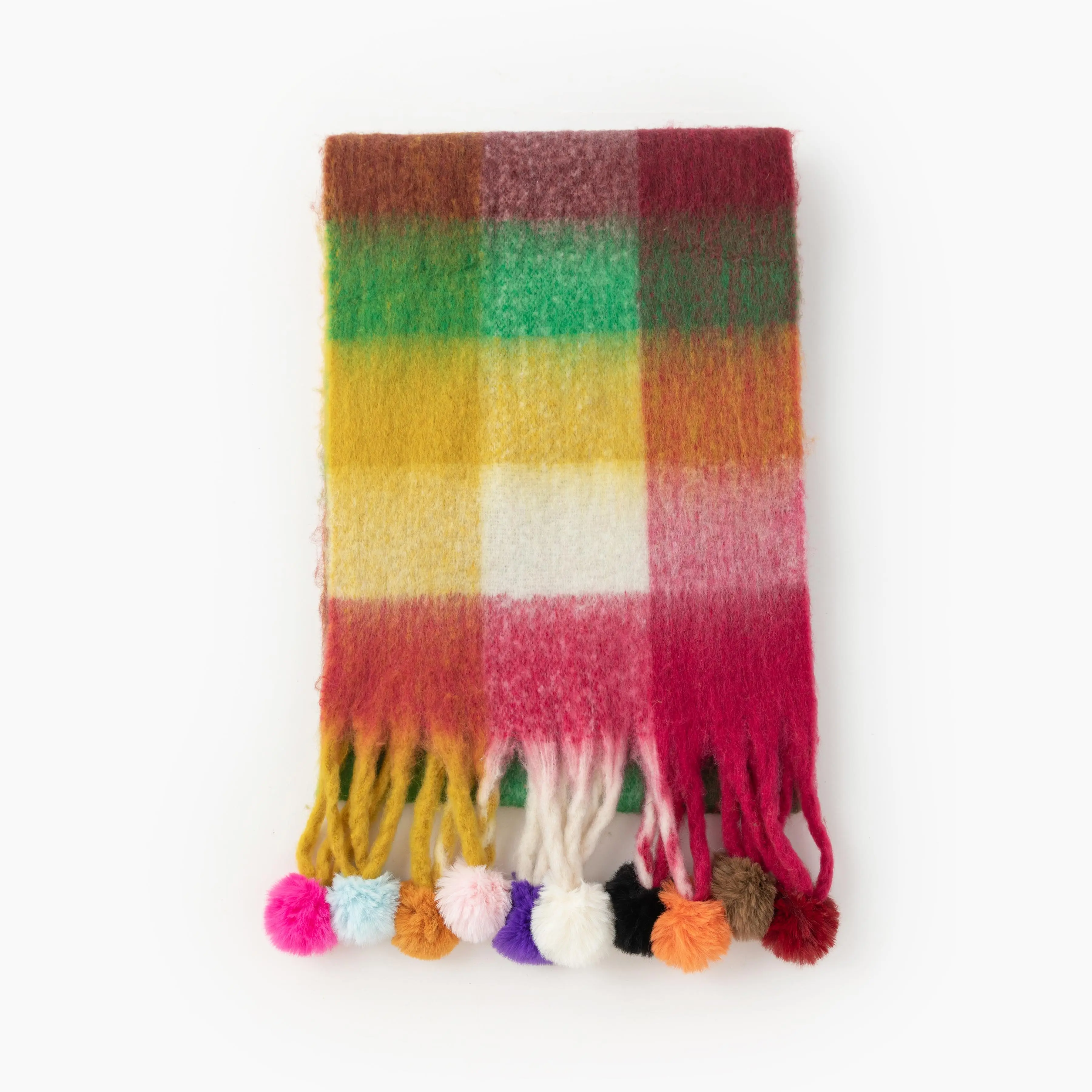 Cider [2 colors, Size One Size-One Size] Check Balls Tassel Scarf
