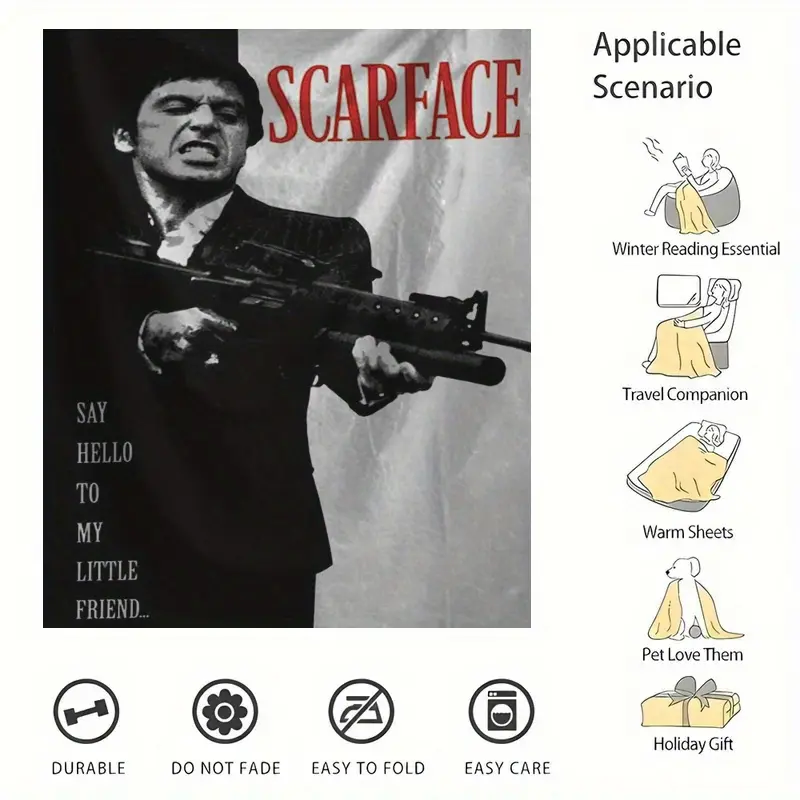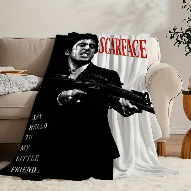Scarface Movie Theme Print Flannel Blanket - Versatile, Warm and Comfortable for the Sofa, Office, Travel - A Great Gift for All Seasons