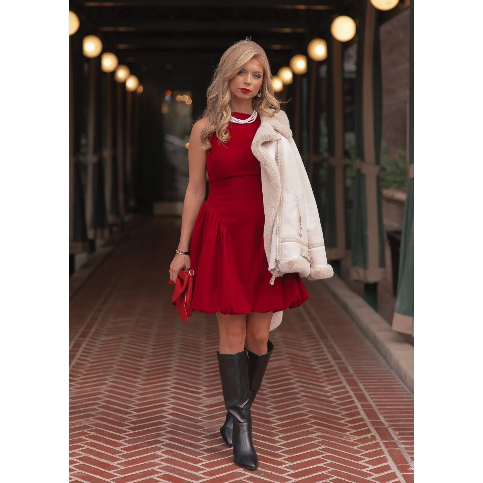 The Scarlett Dress is the epitome of holiday elegance, crafted from rich velvet in a deep crimson hue. With its sleek bodice, wide neckline, and softly gathered skirt, it strikes the perfect balance of structure and movement. Timeless yet bold, this dress was made for festive soirées, candlelit dinners, and sparkling celebrations. A true statement piece that radiates seasonal glamour. Add another crimson red style to your holiday wardrobe with our Kelly Dress.