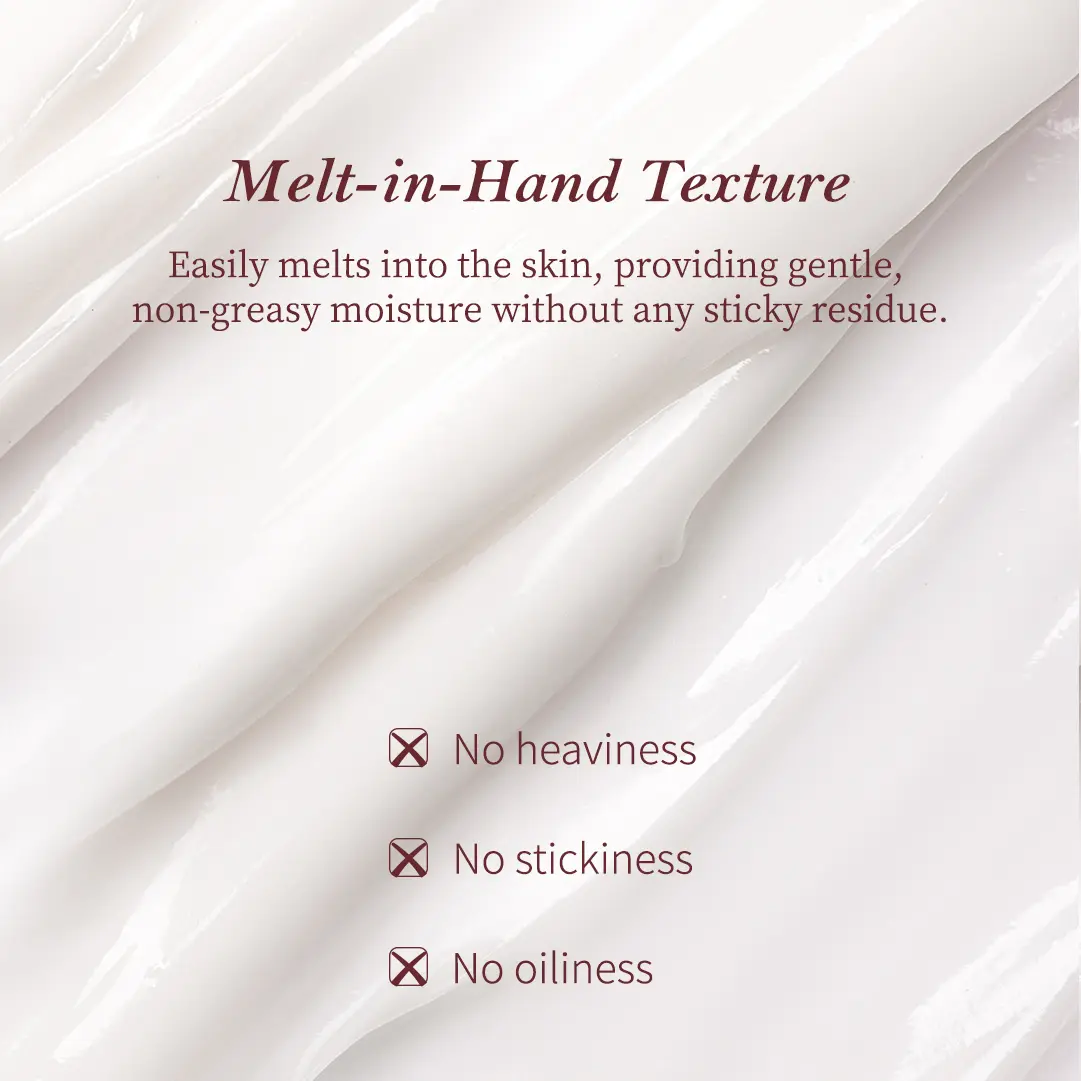 | Ingredients | WATER,BUTYROSPERMUM PARKII (SHEA) BUTTER,GLYCERIN,BUTYLENE GLYCOL,GLYCERYL STEARATE,POLYSORBATE 60,DIMETHICONE,FRAGRANCE,HYDROGENATED POLY(C6-14 OLEFIN),ISOPROPYL PALMITATE,GLYCOSYL TREHALOSE,SORBITAN STEARATE,PALMITIC ACID,STEARIC ACID,HYDROGENATED STARCH HYDROLYSATE,1,2-HEXANEDIOL,CETYL ALCOHOL,BEESWAX,STEARYL ALCOHOL,HYDROXYACETOPHENONE,CARBOMER,TROMETHAMINE,PROPANEDIOL,ETHYLHEXYLGLYCERIN,TOCOPHERYL ACETATE,DISODIUM EDTA,ALOE BARBADENSIS LEAF EXTRACT,PENTYLENE GLYCOL,SODIUM ACETYLATED HYALURONATE,SODIUM HYALURONATE,CERAMIDE NP,HYDROGENATED LECITHIN,SODIUM HYALURONATE CROSSPOLYMER,SUCROSE STEARATE,HYDROLYZED SODIUM HYALURONATE,GLYCOSPHINGOLIPIDS |