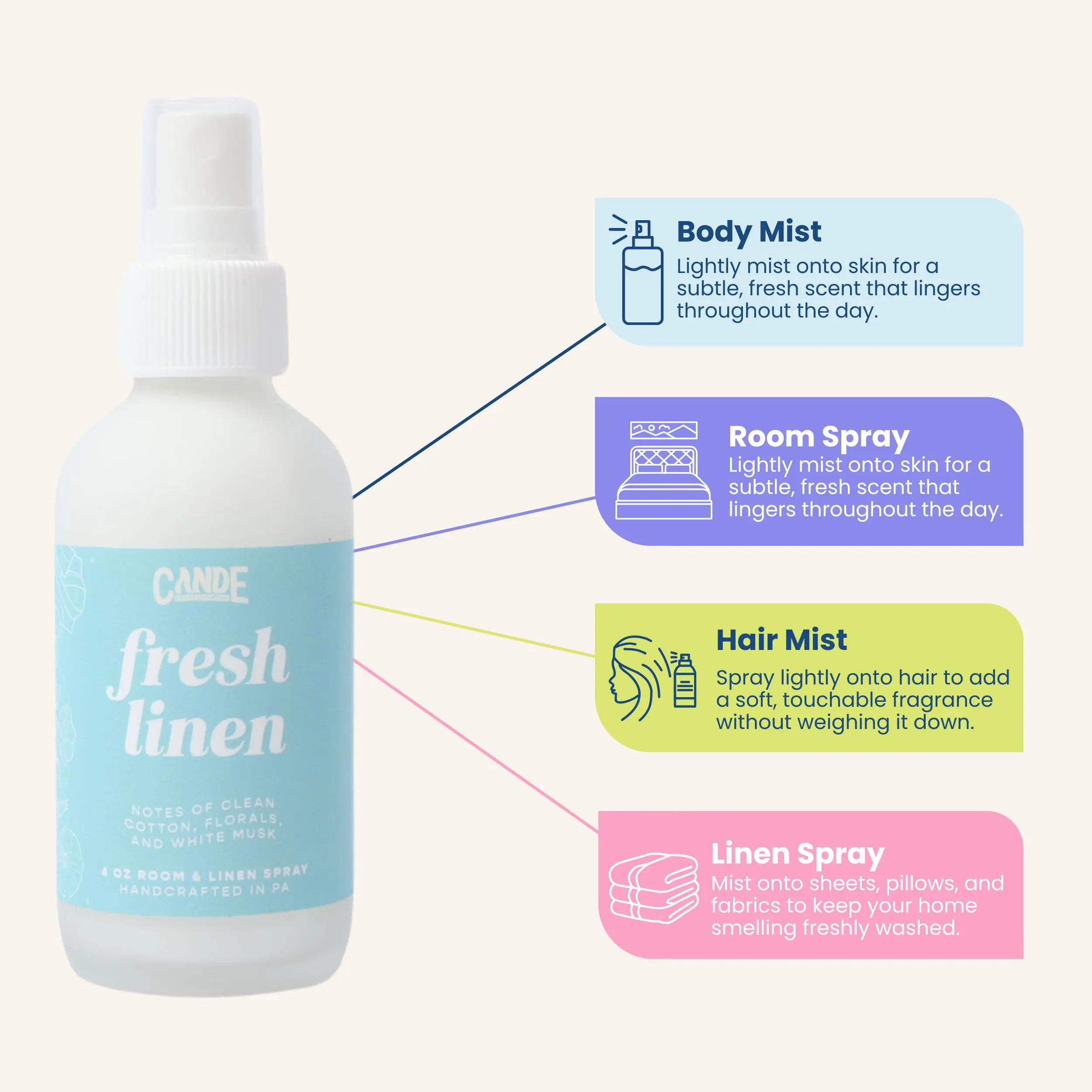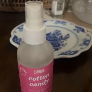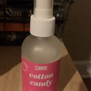 I’m in love! The scent is amazing! It’s a good sized glass bottle with fragrance that can be used as room or linen spray plus used on dryer balls. High quality and only four ingredients! Cotton candy is strawberry, warm intoxicating vanilla and warm sugar.