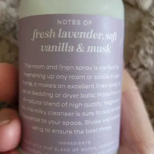 Great scent. Very lavender-y more than vanilla. I use it as a pillow spray before bed. Long lasting, high quality. I've ordered several more!! Love the glass bottle, too.