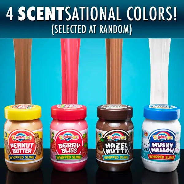 The slime is available in four scents: Peanut Butter, Chocolate, Marshmallow, and Mixed Berry. Each scent is gooey, stretchy, and perfect for stretching, kneading, tearing, shaping, and squishing. 🍫🍓