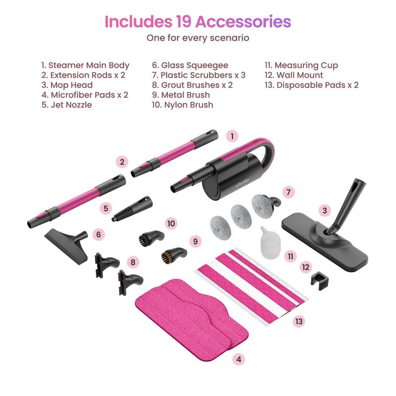 This steam mop is designed to tackle a wide range of cleaning tasks across your home — from kitchen grease and bathroom grime to dirt on walls, floors, tiles, windows, and grouts. Its versatile attachments allow you to deep clean every corner with ease, keeping your entire home spotless and refreshed.
