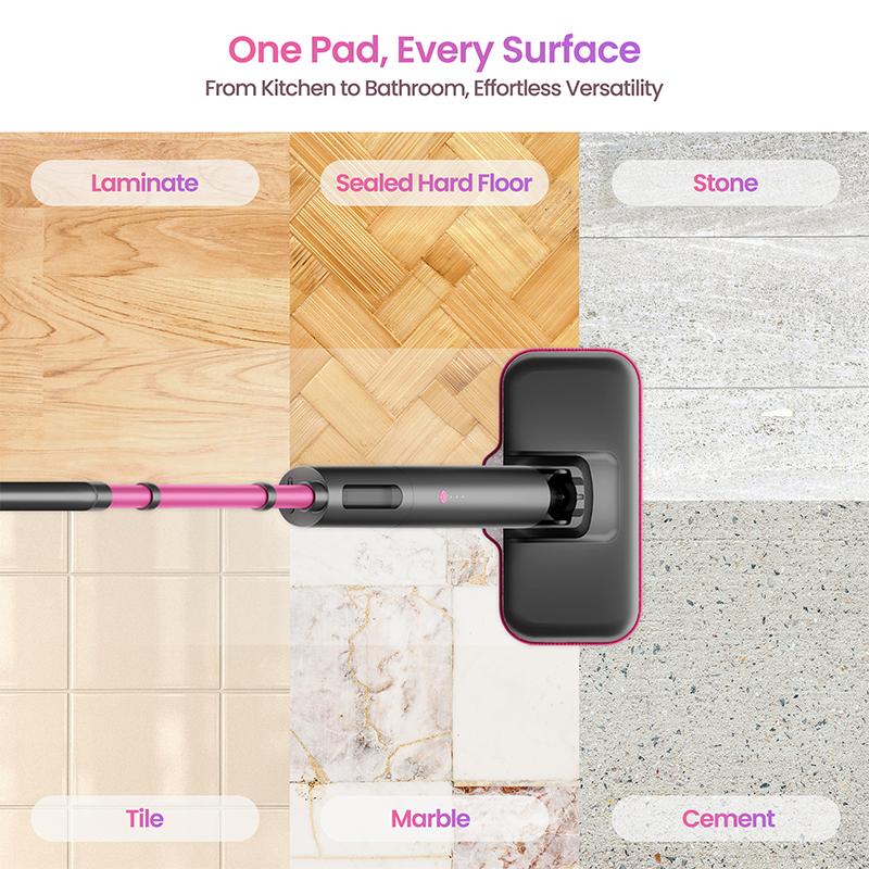 Safely cleans hardwood, tile, marble and more. Switch between floors effortlessly.