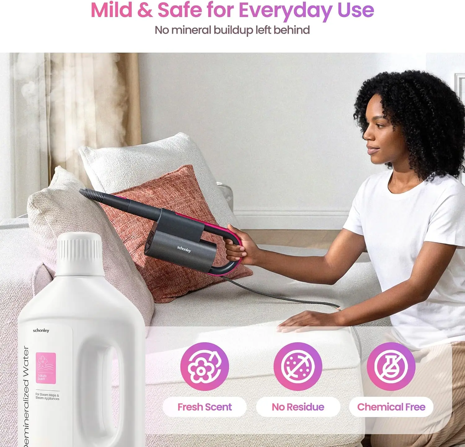 Made with demineralized water and a mild fragrance to help maintain optimal steam performance while keeping your machine protected.