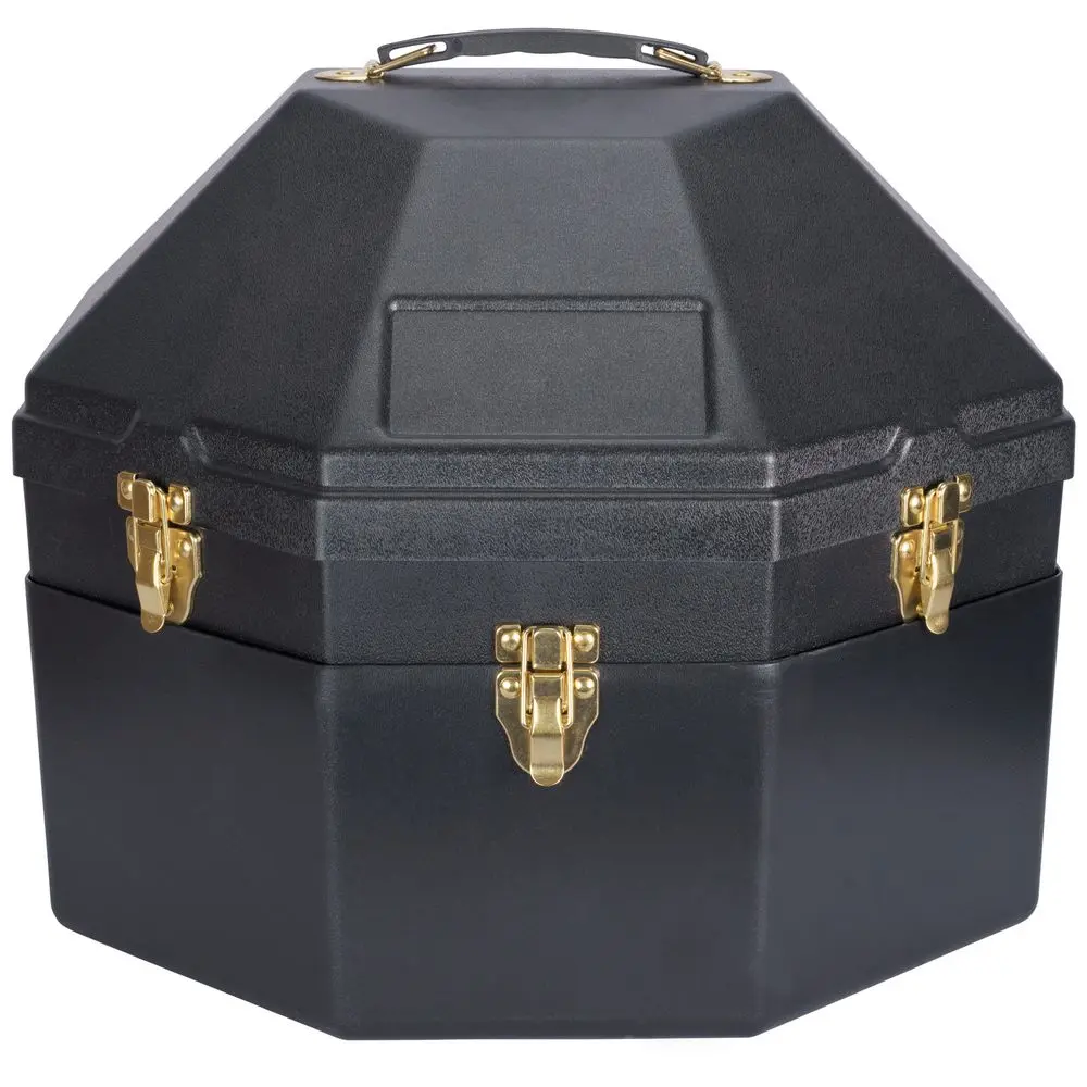 Protect and transport your valuable Western horse hats with confidence using the Schneiders Western Double Hat Can. Designed with equestrians in mind this premium double hat carrier is built for durability travel and long-term storage. Whether you're heading to the barn farm rodeo or on a flight your cowboy hats will stay safe clean and perfectly shaped. It accommodates two traditional Western hats with 4" brims stored crown up and comfortably fits sizes up to 7 1/4. Adjustable internal hat rests provide a customized secure fit while the top piece detaches for easy separate carrying. Lockable latches and lock-in-place hinges that stop at 90 degrees offer added security during transit. The case is airline friendly making it ideal for hassle-free equine travel. Its durable molded construction stands up to demanding barn environments and rugged travel conditions. For a personal touch you can add an optional Stick-On Brass Name Plate sold separately. With inside dimensions of 16 7/8" L x 15" W and an overall height of 13 1/2" this hat can is the smart solution for horse owners riders and barn managers looking to protect their investment in Western headwear. It's perfect for horse shows equestrian events or simply keeping your hats neatly stored and protected at the barn.