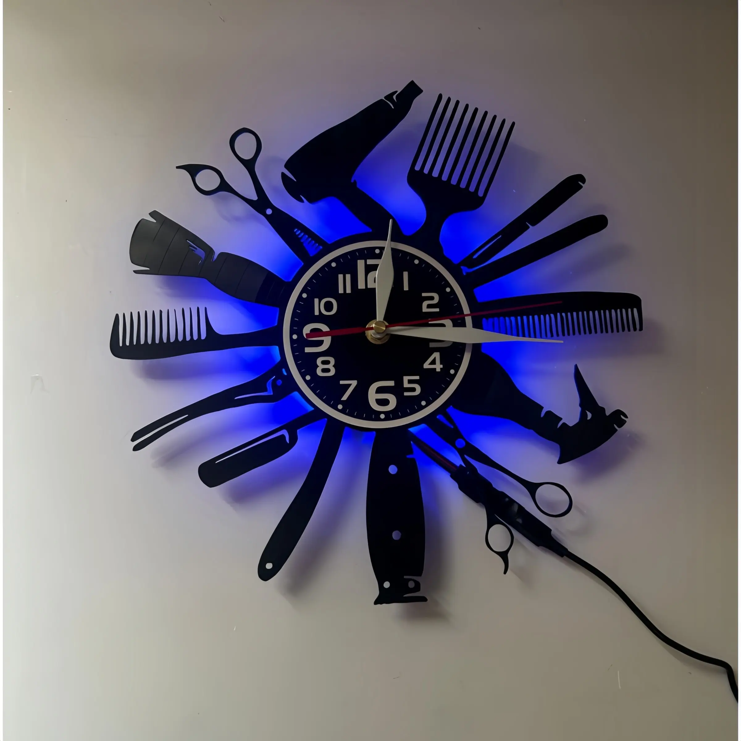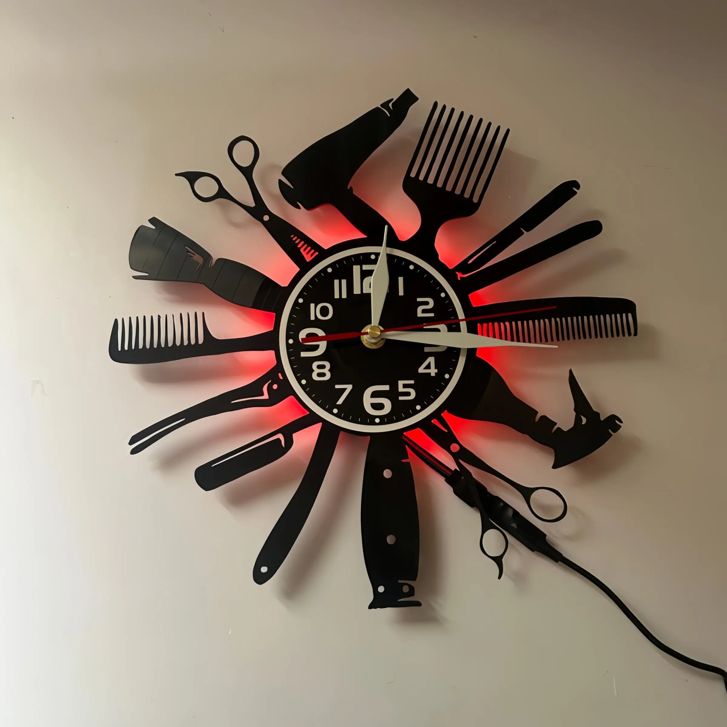 Scissors Comb Shape LED Clock, Numbers & Hands, Clear Easy-Read Design, Ideal for Hair Salons & Styling Studios, Home Decor