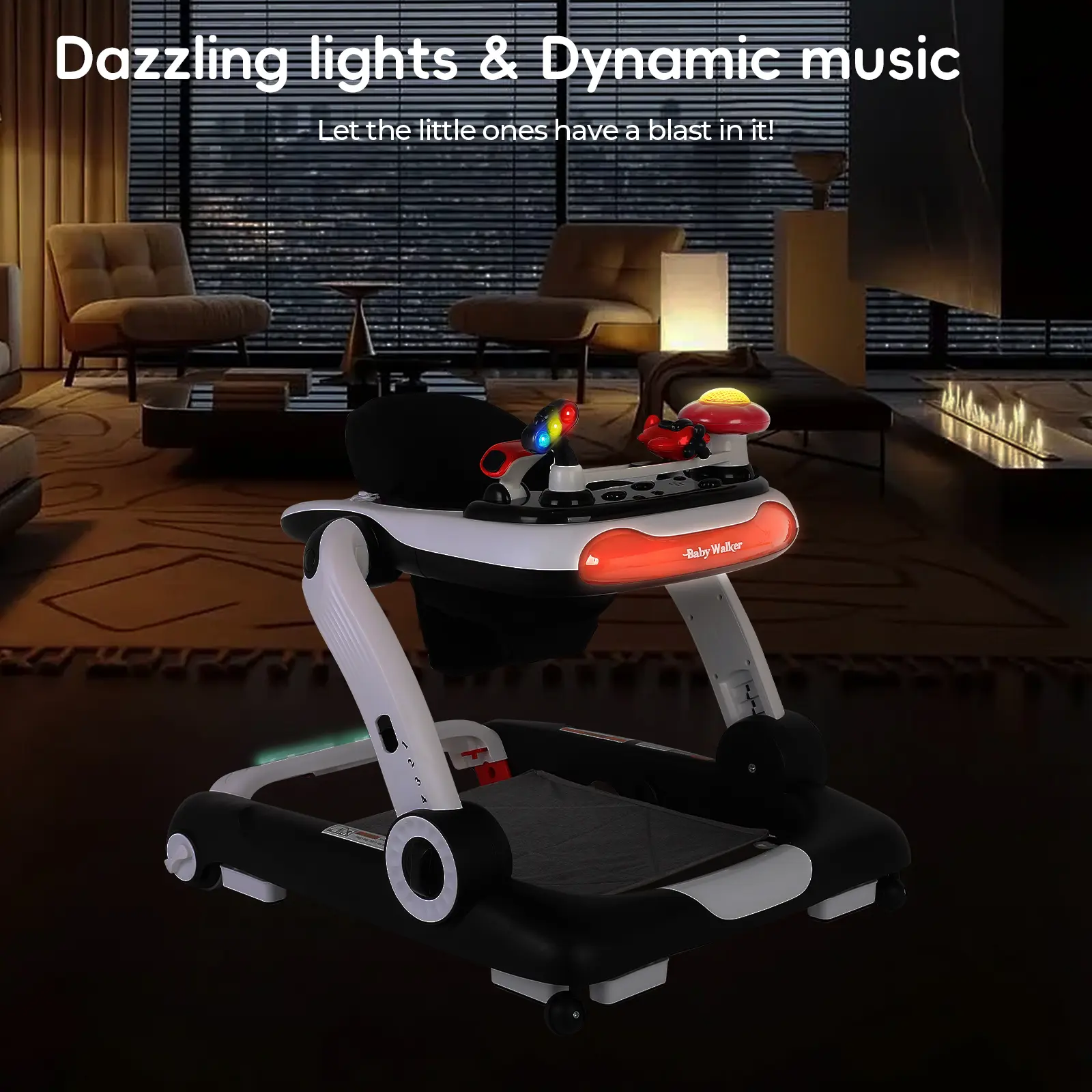 ·MUSIC LIGHT INTERACTIVE CENTER: Baby walker with wheels music light disk can play music and light to promote the baby's auditory development, equipped with a variety of interactive game elements, exercise hand-eye coordination and cognitive ability