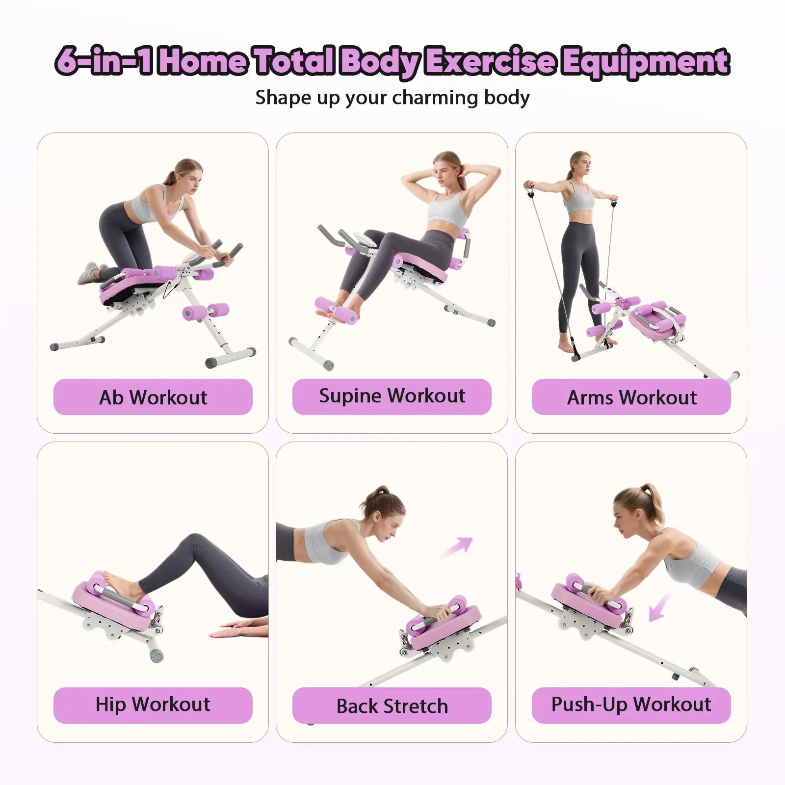 Multi-functional Ab Workout Equipment: This ab trainer machine can be used for a variety of exercises, including ab exercise, sit-ups, rope pulling resistance training, push-ups, lower body shaping and back stretching. It effectively exercises the entire core area, abdomen, waist, back, buttocks, arms and legs