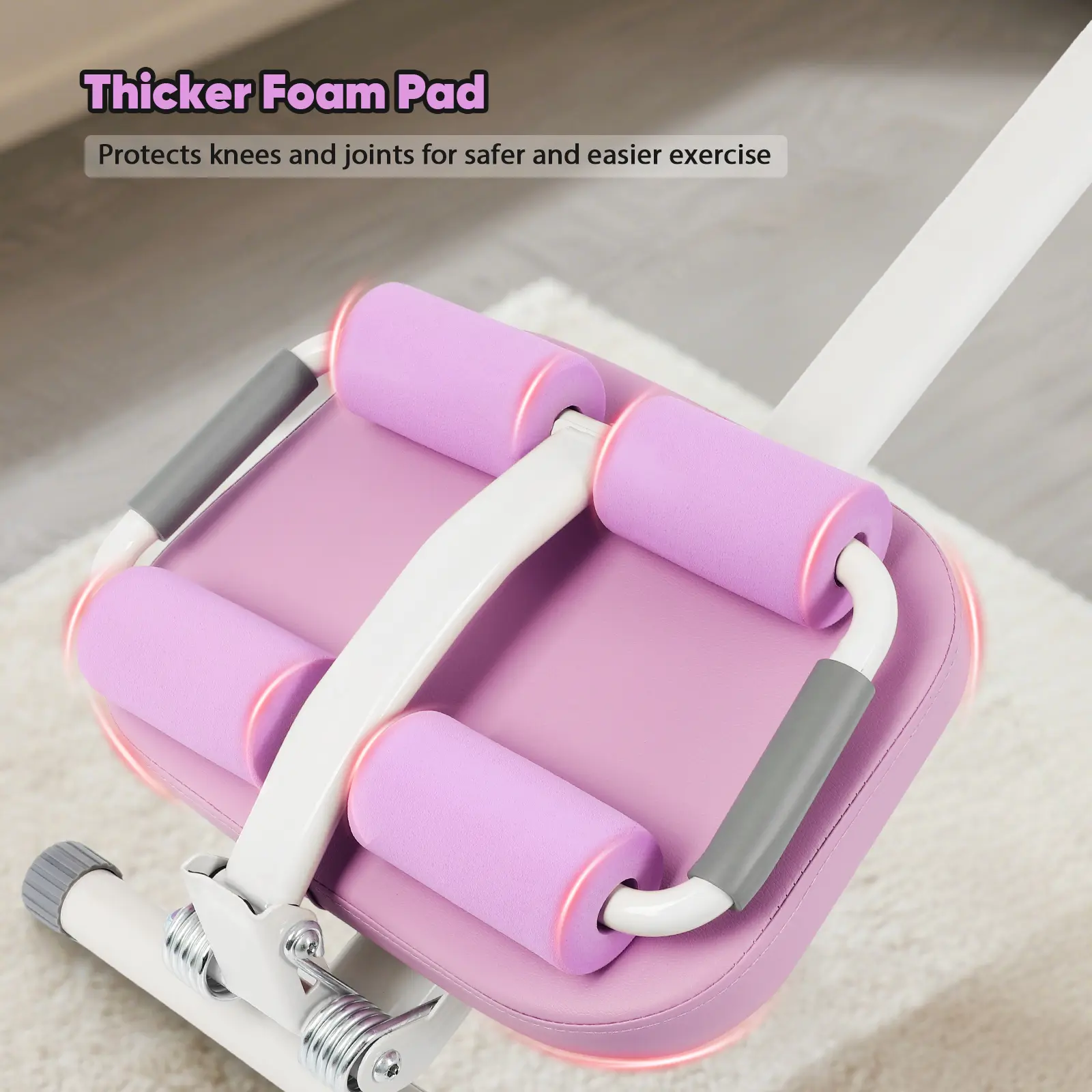 Enhanced Comfort and Safety: The adjustable abdominal trainer includes a soft foam pad and padded handles, designed to minimize pressure on the knees and back. This ergonomic features provide joint-friendly support for a more comfortable and effective workout. The anti-slip foot pads on the abdominal trainer improved stability