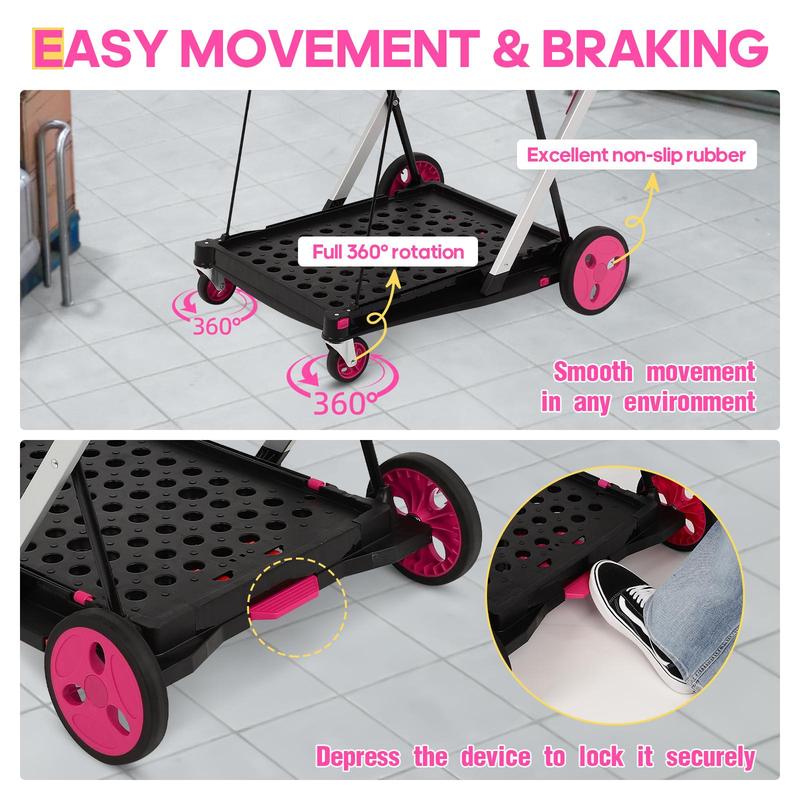 Multi-Use Functional Collapsible Carts | Mobile Folding Trolley | Shopping Cart with Storage Crate,Foldable Utility Cart with Wheels