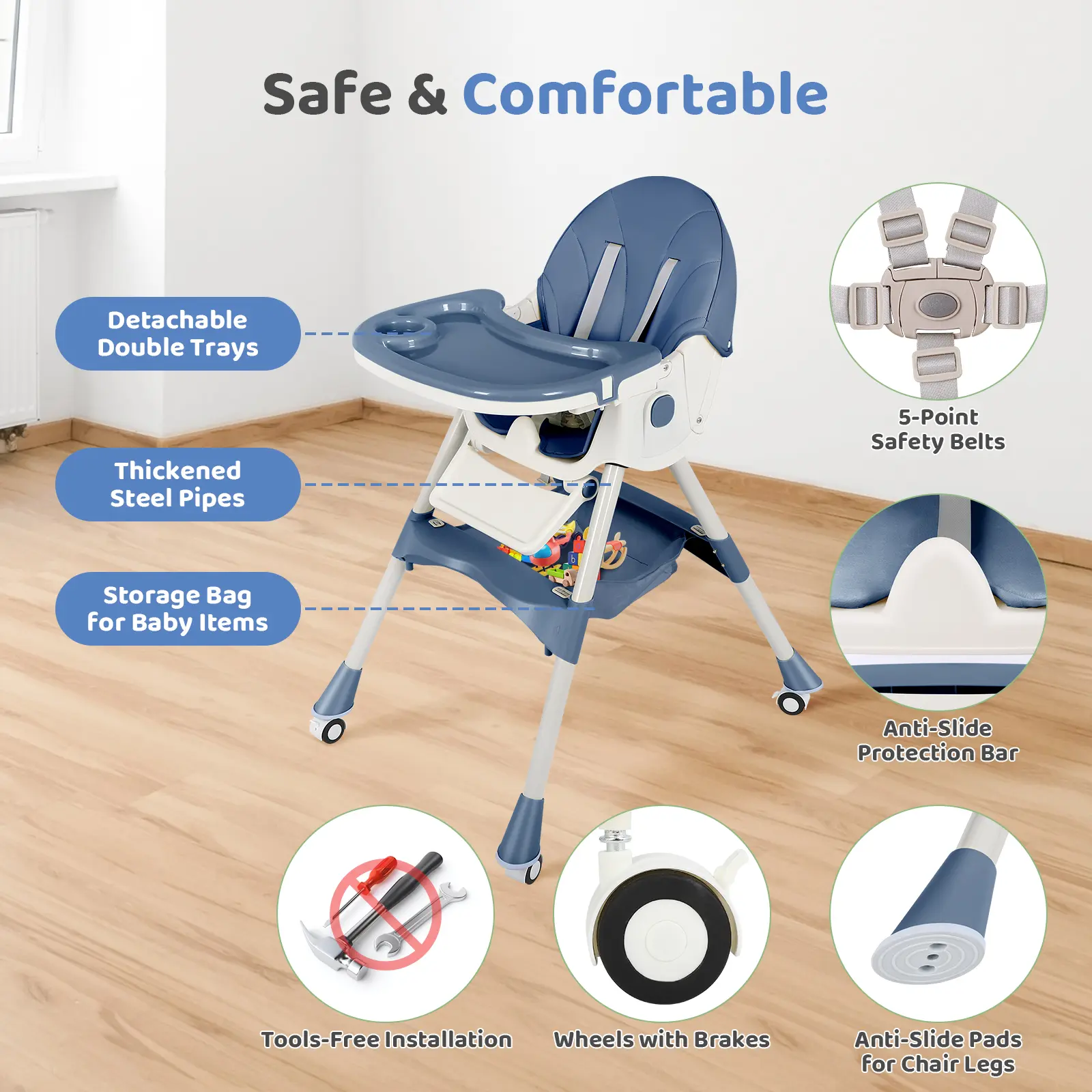DeepSeaBlue+FootMop+ UniversalWheel+RockingHorse