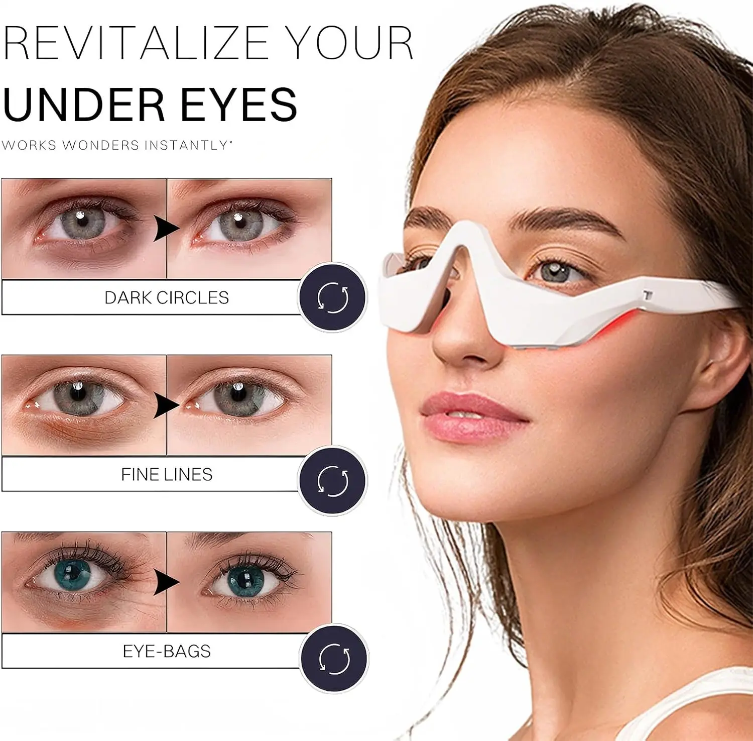 ·【HIGHLY EFFECTIVE】10 minutes of daily use of the red Light therapy eye glasses tightens and improves puffiness, reduces dark circles, brightens tired eyes, and visibly reduces the appearance of fine lines and wrinkles.