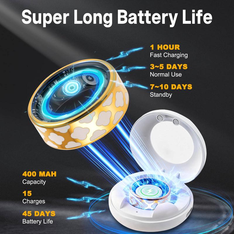 ·[IP 68 WATERPROOF] The fitness tracker ring is fully enclosed structure, IP68 waterproof technology, swimming and diving can be worn, support 1000 meters depth waterproof.