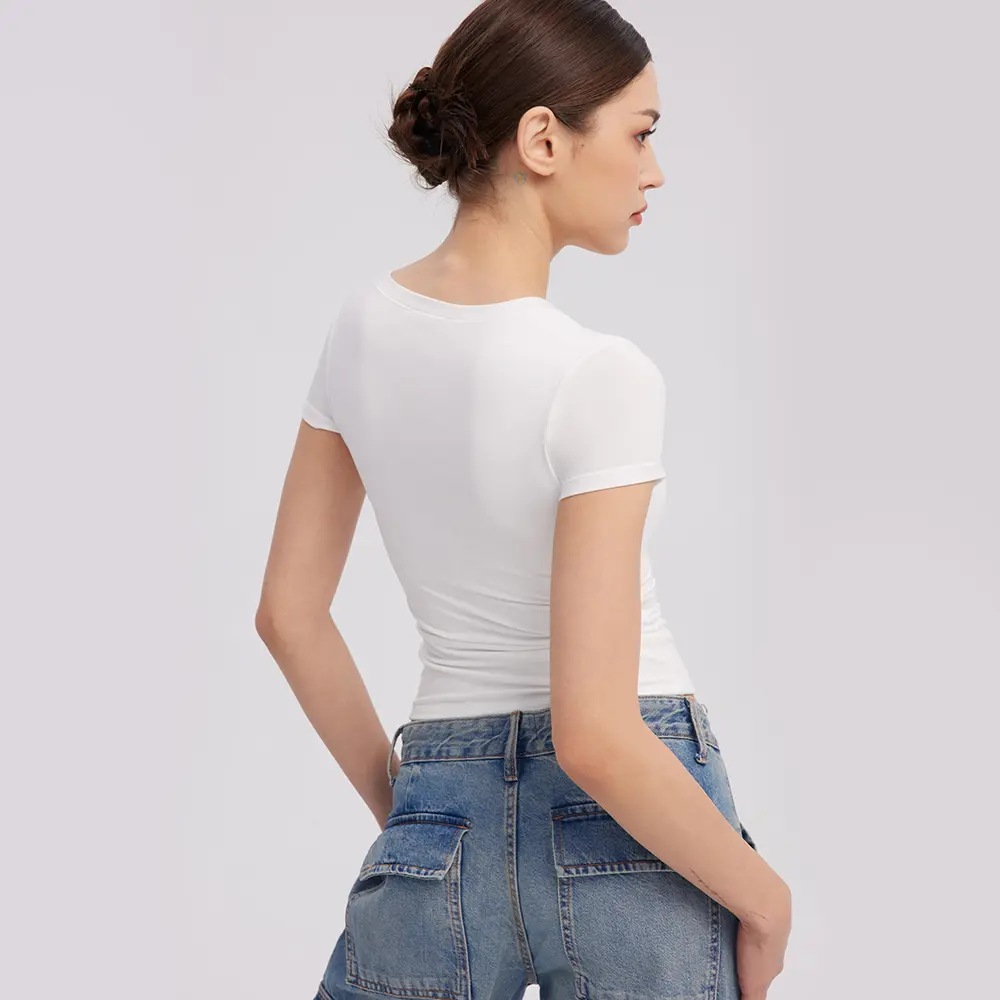 I love this shirts, it so cute and so soft! Since it’s a basic, you can style it with anything. It fits great aswell. My measurements are 40-32-36(Shoulders-Bust-Waist) and I have a little bit of a tummy, which the shirt slightly compresses.🫶🏽