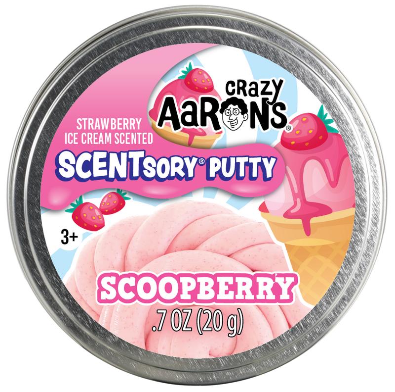 Treat yourself to something sweet! Scented with ripe strawberry and creamy vanilla, Scoopberry SCENTsory® putty is a cool way to play. It looks just like a spoonful of strawberry ice cream in your hand.