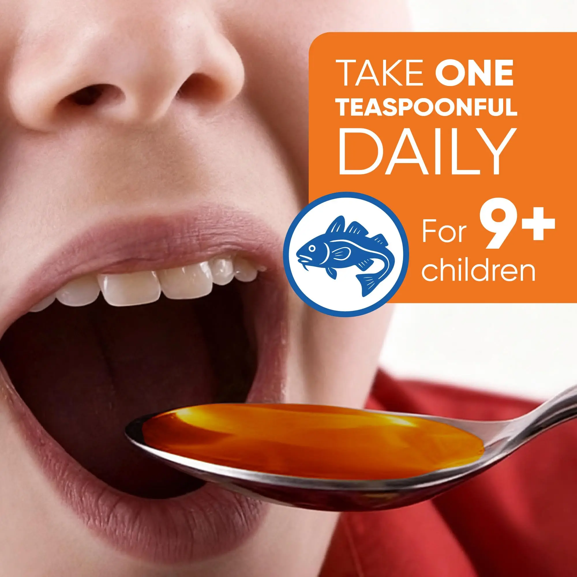 [ IMMUNE & RESPIRATORY SUPPORT ] – Features Vitamin A and D to help support immune health and respiratory wellness; ideal for seasonal changes; cod liver oil for kids in a smooth, easy-to-digest orange-flavored liquid.