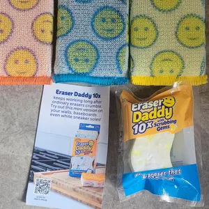 Love these for pots and pans and even scrubbing the bathroom. Love the colors and the free gift of a mini eraser.