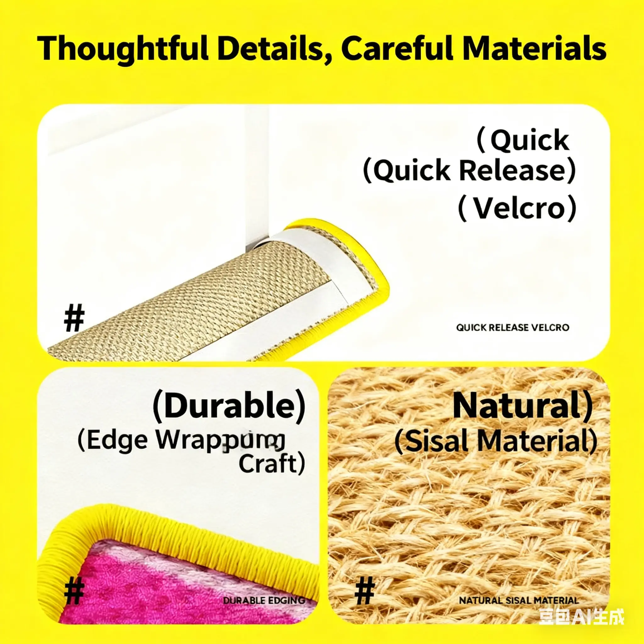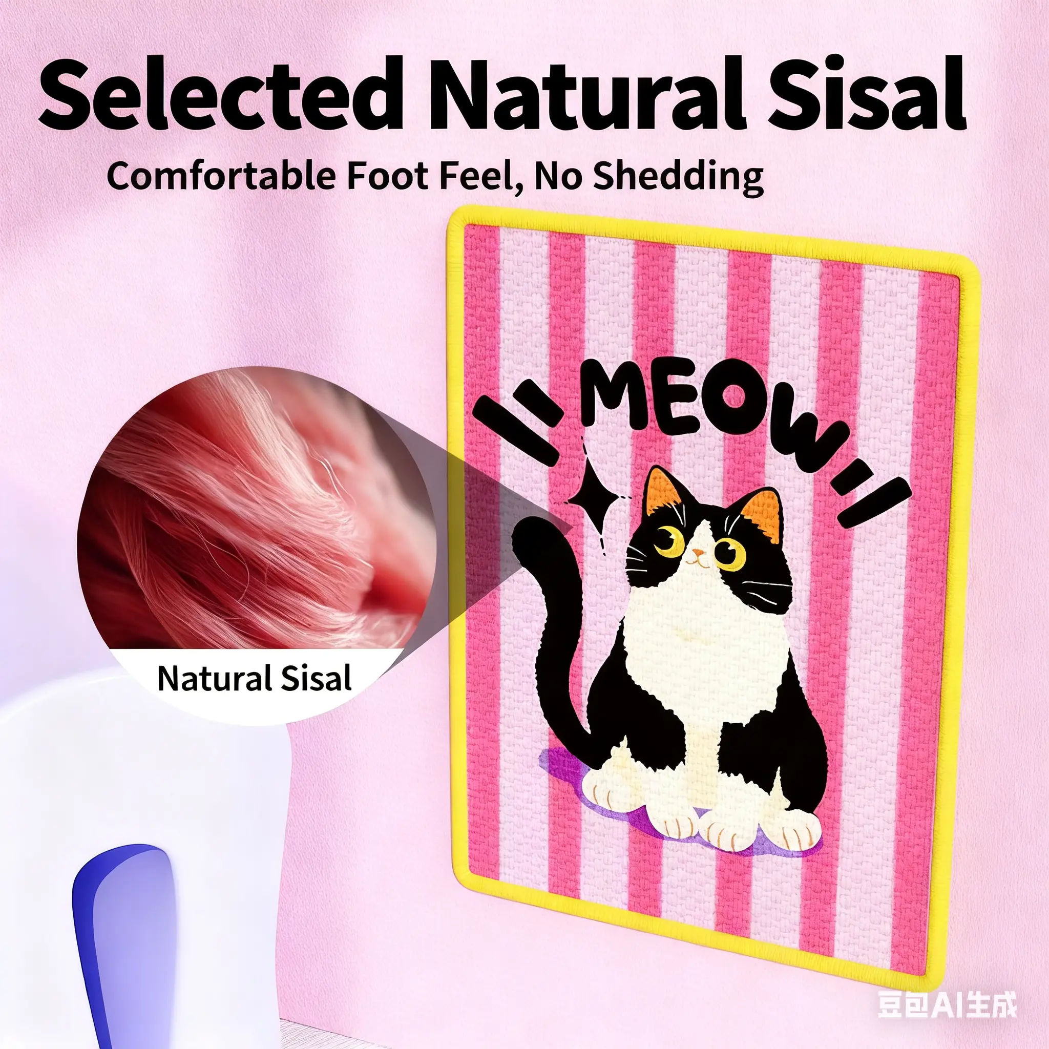 Let your cat scratch freely! This mat goes wherever your cat loves to claw. Made with Natural Sisal, it's soft yet durable, resistant to scratching, and doesn’t shed. Perfect for healthy claw grinding! 🐾