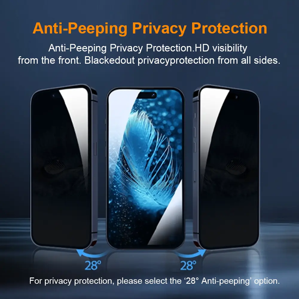Features a 28° privacy angle to help protect on-screen information in public spaces.