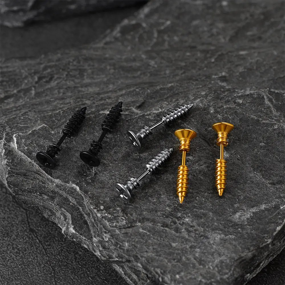 3 Pairs of screw-back stud earring sets for men, punk style, go well with any style and any occasion. Minimalist Rock style makes these earrings go well with every outfit, making it a unique present for him on a birthday/ wedding/anniversary/party/Christmas/New Year/graduation/father's Day/ valentines-day, etc.