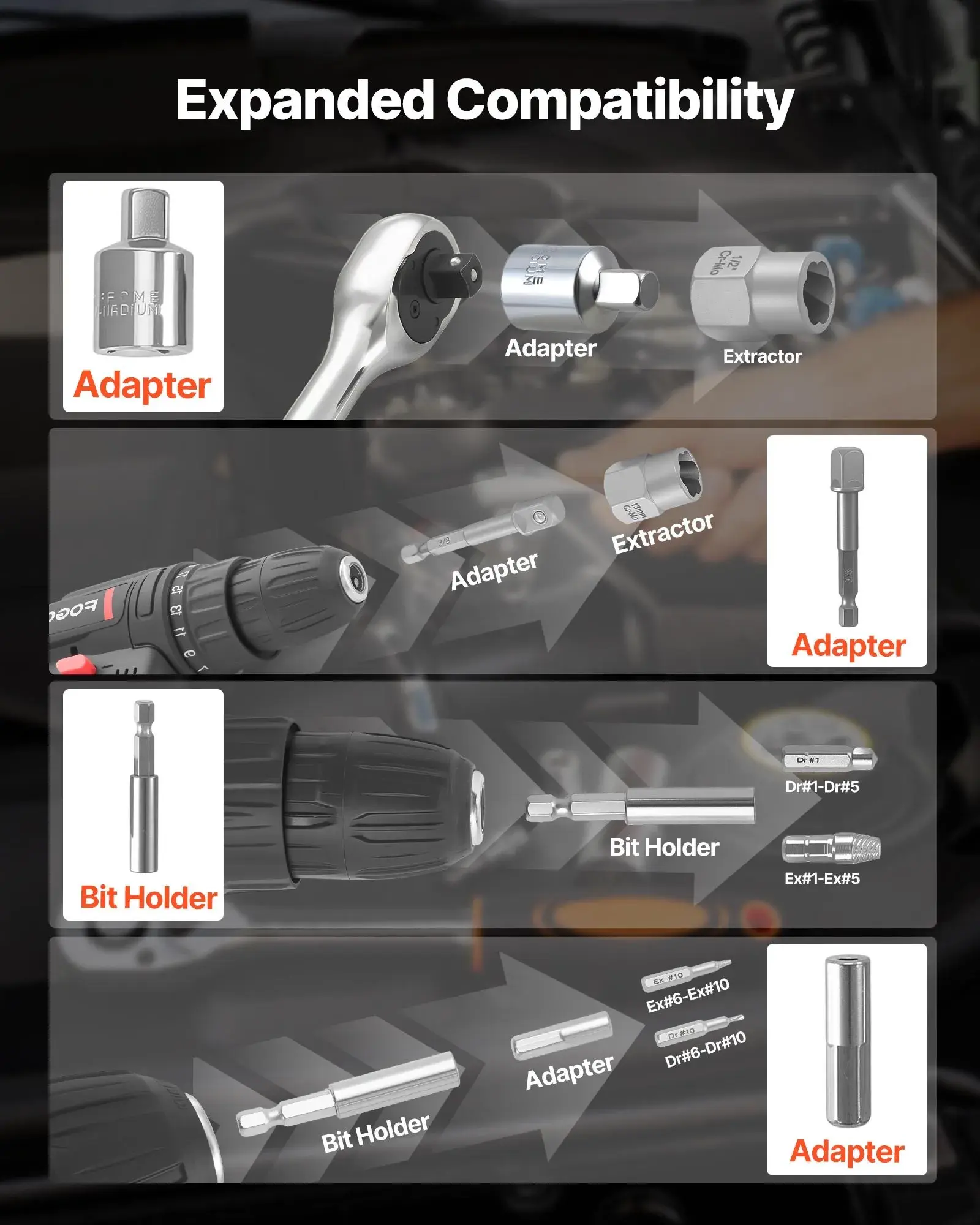·Works with Your Existing Tools: Compatible with common hand tools and power tools, our bolt extractor set allows smooth transitions between setups without changing how you normally work