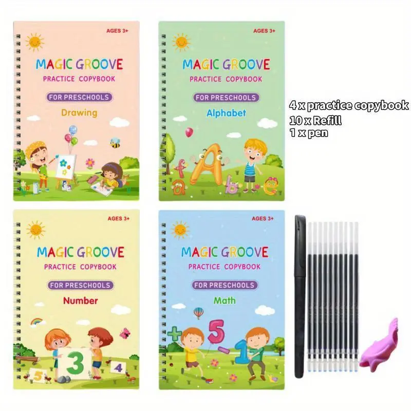 My son love this and it has helped him so much. My favorite thing about this product is that the ink disappears and it is reusable. It already has grooves so it helps them learn how to write the letters. It comes with four different books.