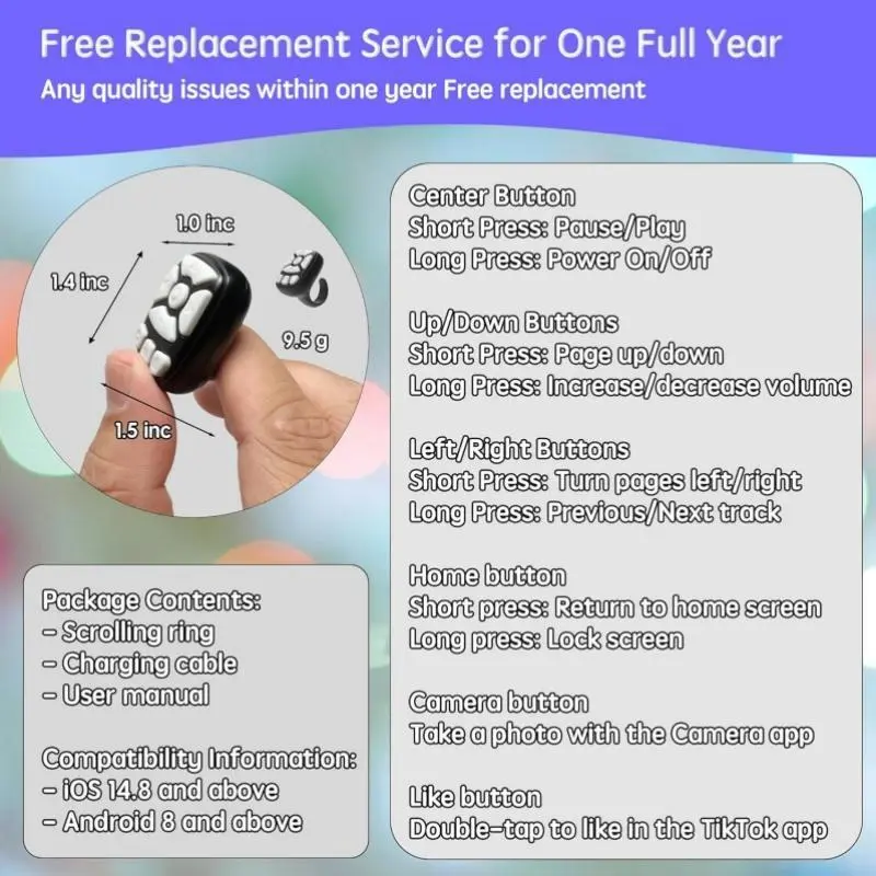 ·8 Multi-Function Buttons – Equipped with 8 versatile buttons for easy switching and operation. Enhance your control over social media and camera functions with one simple click.