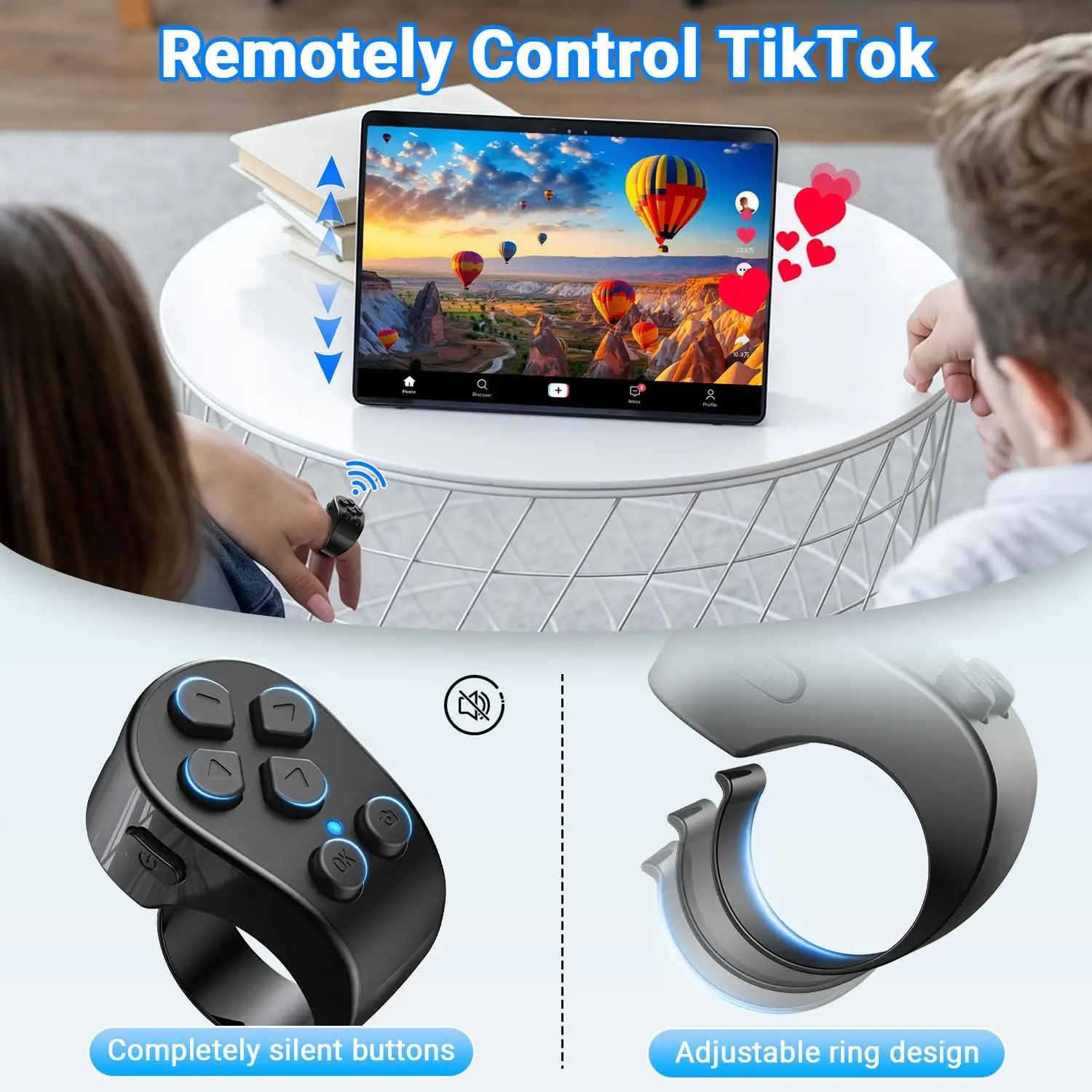 Scrolling Ring Remote Control,Page Turner for iPad iPhone & Android Tablet,Bluetooth Camera Remote, Scrolling Ring for TikTok,YouTube,Instagram,iOS,Android (Black)