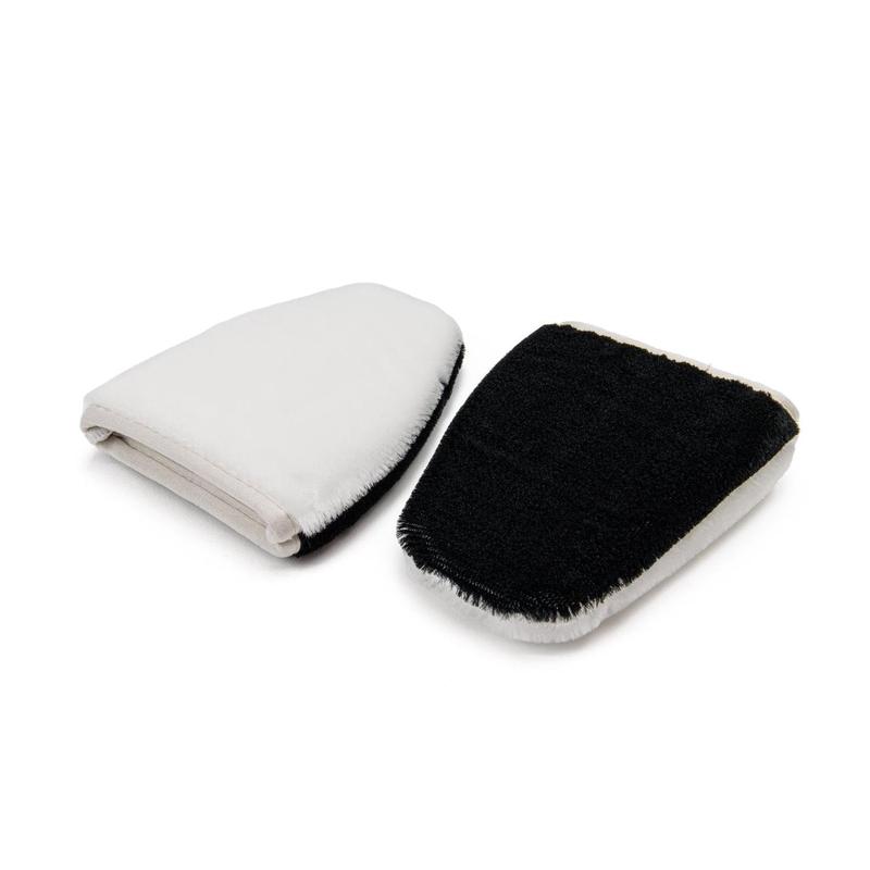 Scrub interior vehicle surfaces like plastic, leather & vinyl clean with the brush-like, bristle-type nylon material. The firm but gentle fibers scrub deep into surface pours and contours. The black and white sides are the same material and can be used for tracking which side you used. Use this car interior scrubber with your favorite cleaner and wipe away residue with a clean microfiber towel. The small mitt size fits on a few of your fingers and can reach into tight spots like panel seams or cup holders.