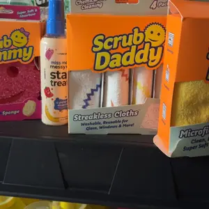 Love these products. The Scrub Daddy is a durable, versatile sponge that changes texture with water temperatureāfirm in cold, soft in warm. It cleans effectively without scratching and lasts longer than regular sponges. The smiley design is ergonomic and functional.