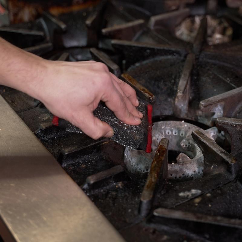 The XL steel scour pad is designed for durability and effectiveness. It outperforms competitors, making it perfect for commercial use. Measuring 5.5" x 3.7" x .75", this pad is rust-resistant and extra durable. Its steel mesh cuts through tough grime effortlessly. Stainless steel fibers resist rust and shredding, ensuring longevity.