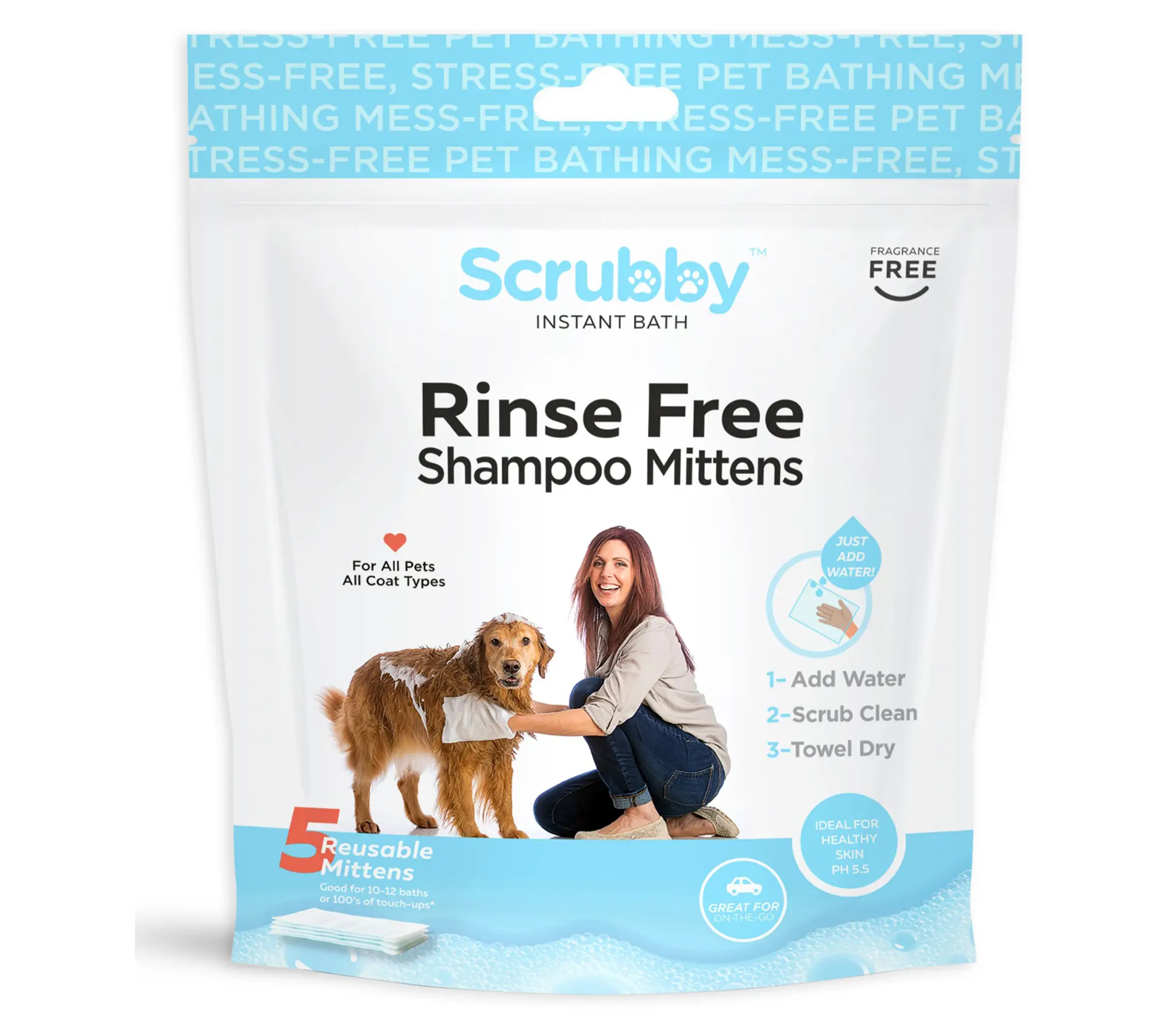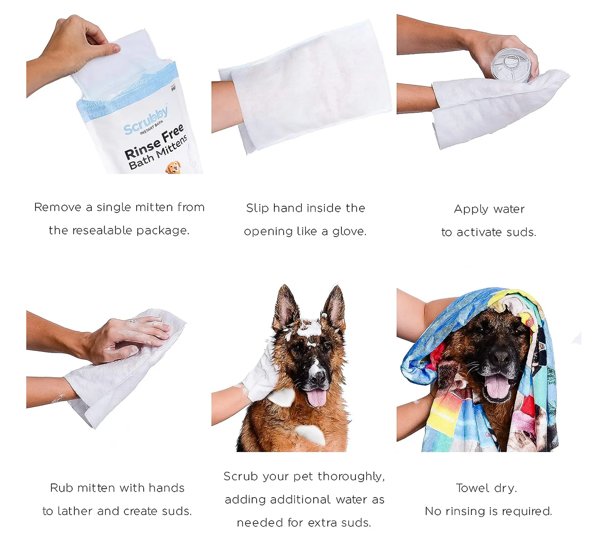 Want a clean pet without the stress? Get these Instant Bath Rinse Free Shampoo Mittens! #scrubbypet #shampoomittensfordogs