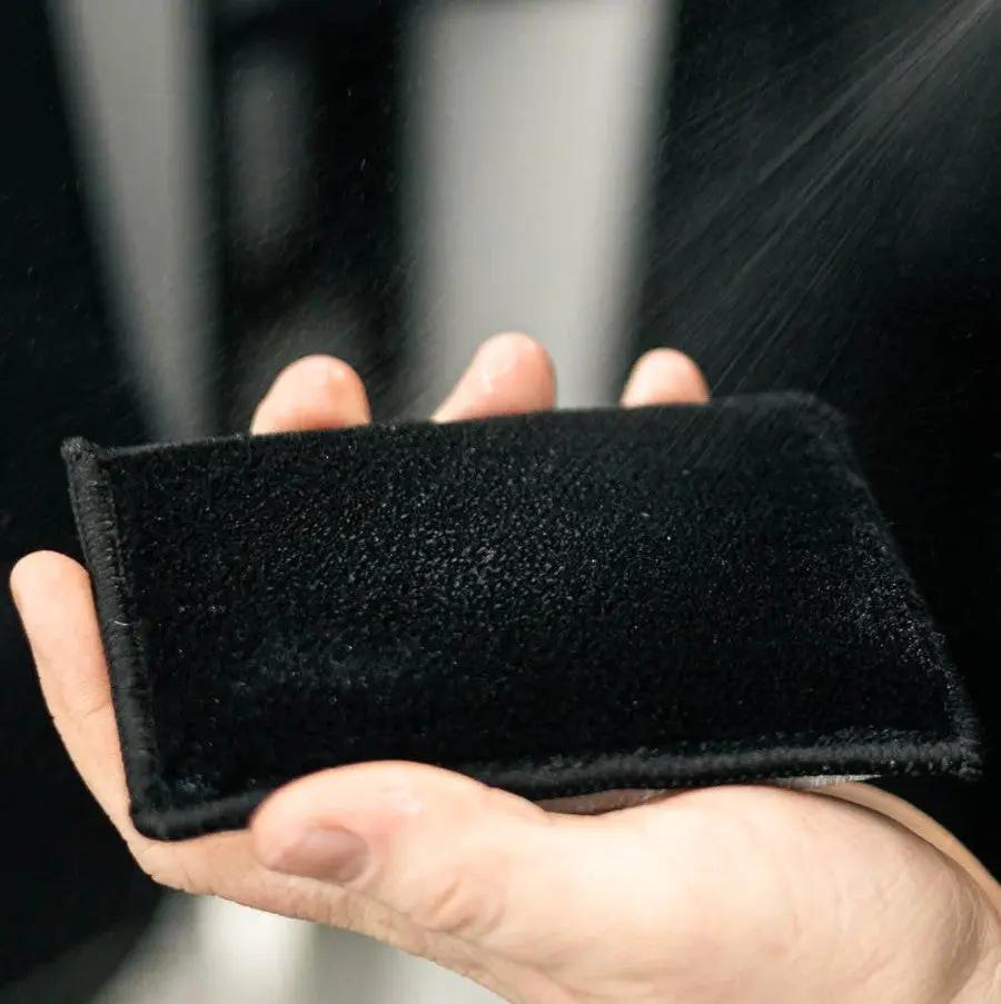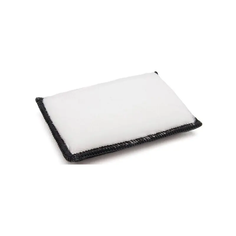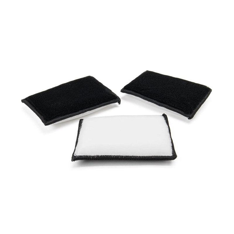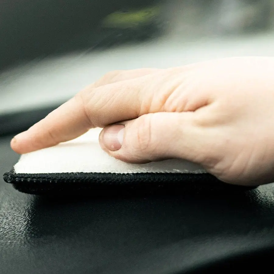 Scrub interior vehicle surfaces like plastic, leather & vinyl clean with the brush-like, bristle-type nylon scrub sponge material. The firm but gentle fibers scrub deep into surface pours and contours.  The black and white sides are the same material and can be used for tracking which side you used. Use these car interior scrubber sponges with your favorite cleaner and wipe away residue with a clean microfiber towel. The ergonomic car interior sponge fits flat in your hand and can access small and large surfaces.