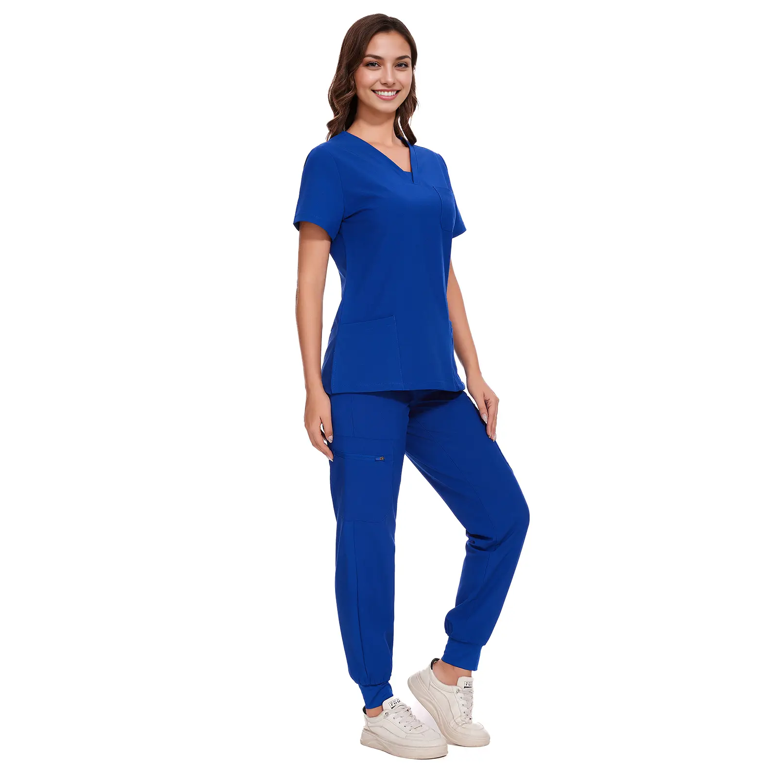 Im 5’3 1/2, the extra small fits me perfectly. There is room to squat and bend down without the pants riding up the ankles, unlike most scrubs. The material feels good and it’s a true royal blue.