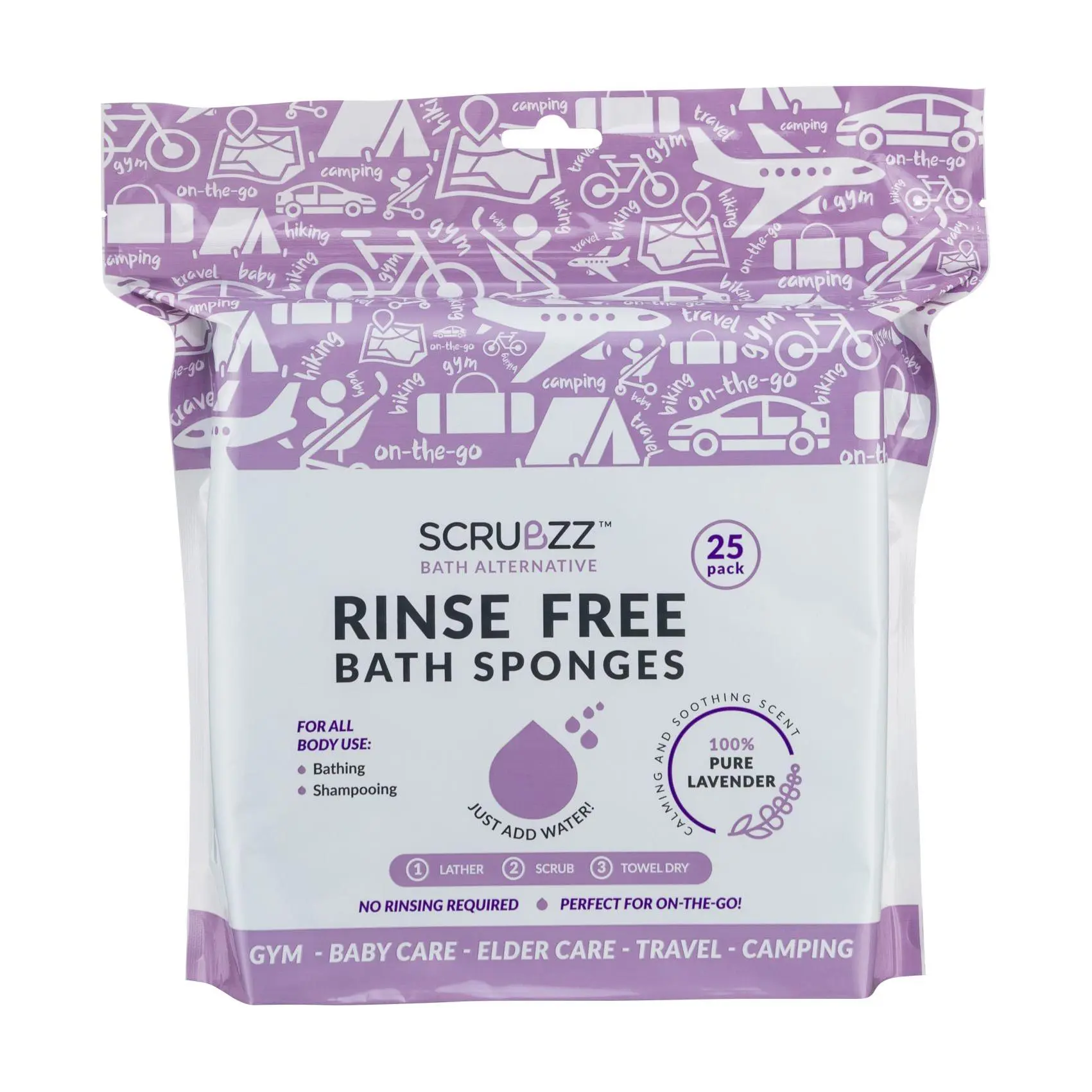 ·Includes two packages of 25-count lavender Scrubzz