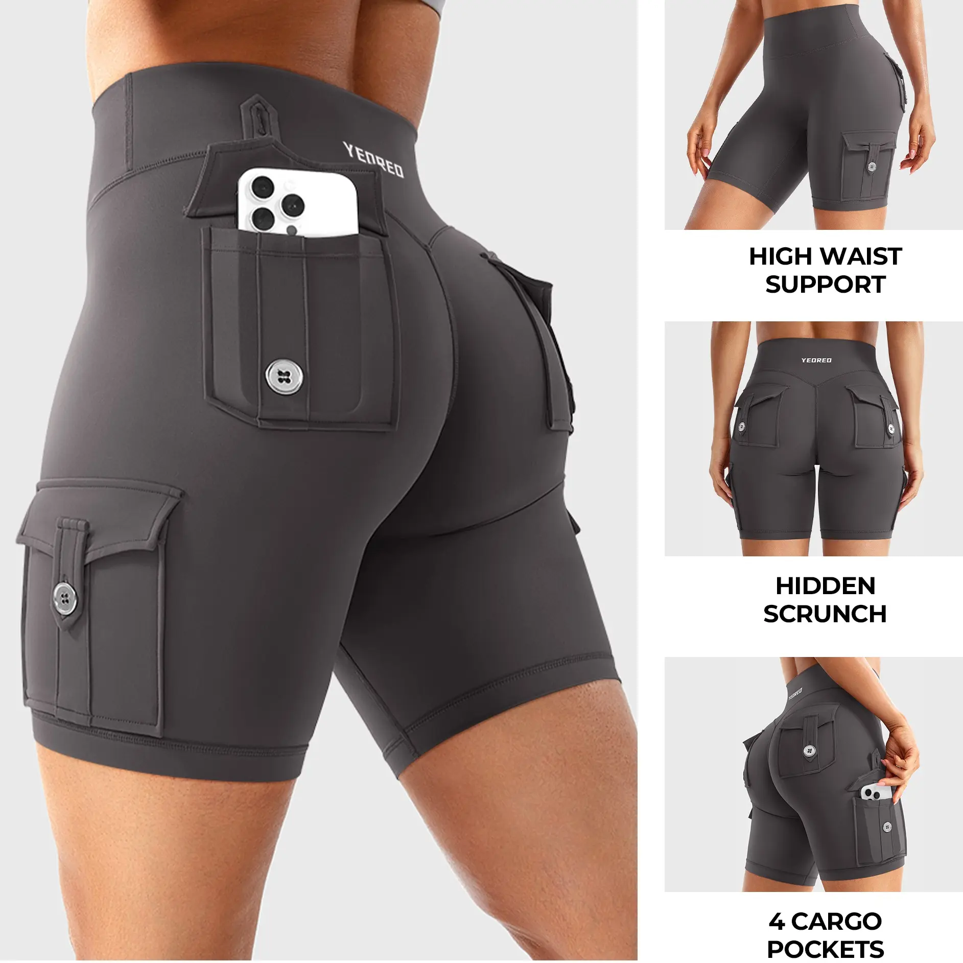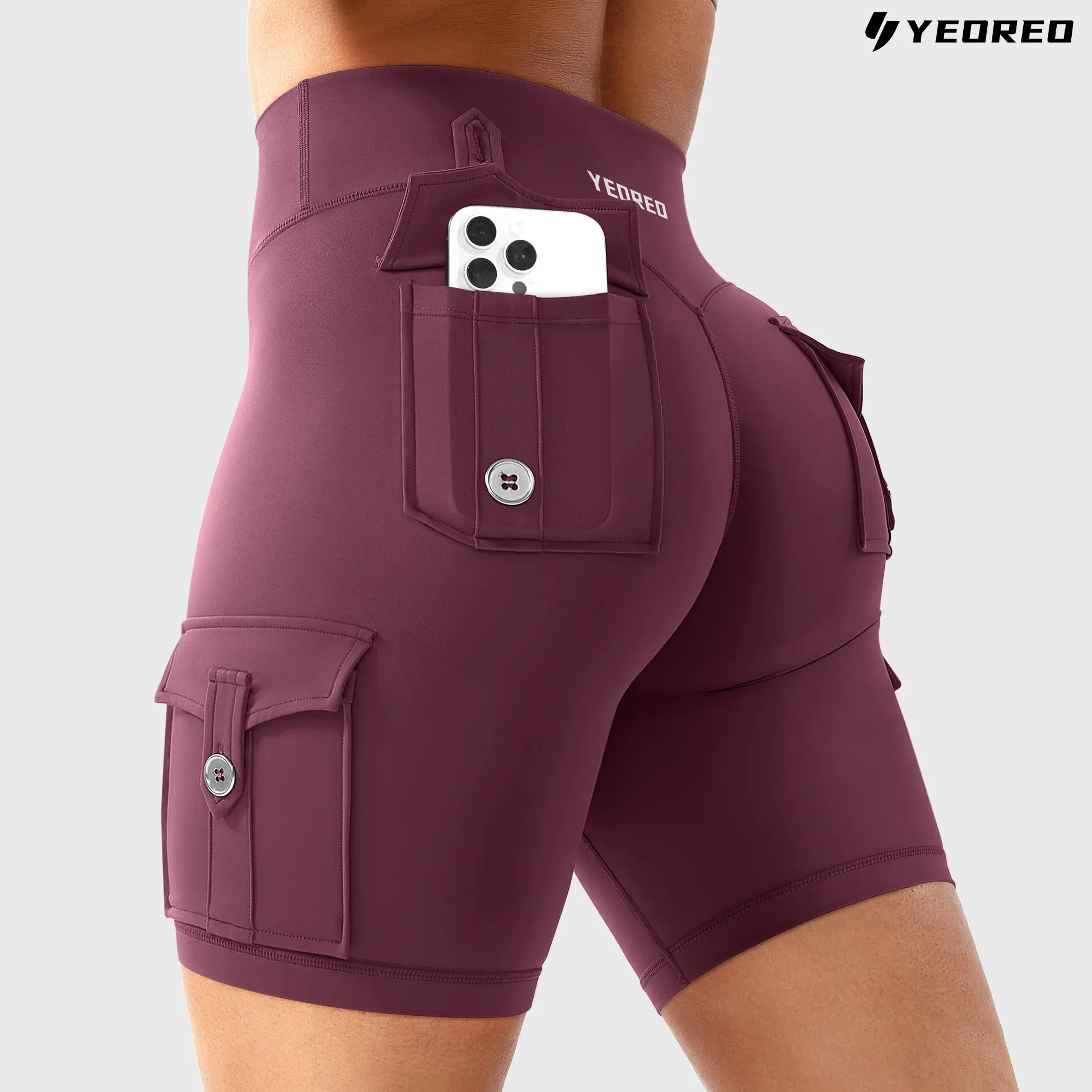 YEOREO CoreFlex Women's Workout Biker Shorts with Cargo Pockets Hidden Scrunch High Waisted 8" Inseam Gym Shorts for Summer Squat-Proof & Comfortable Fit SpringStatements