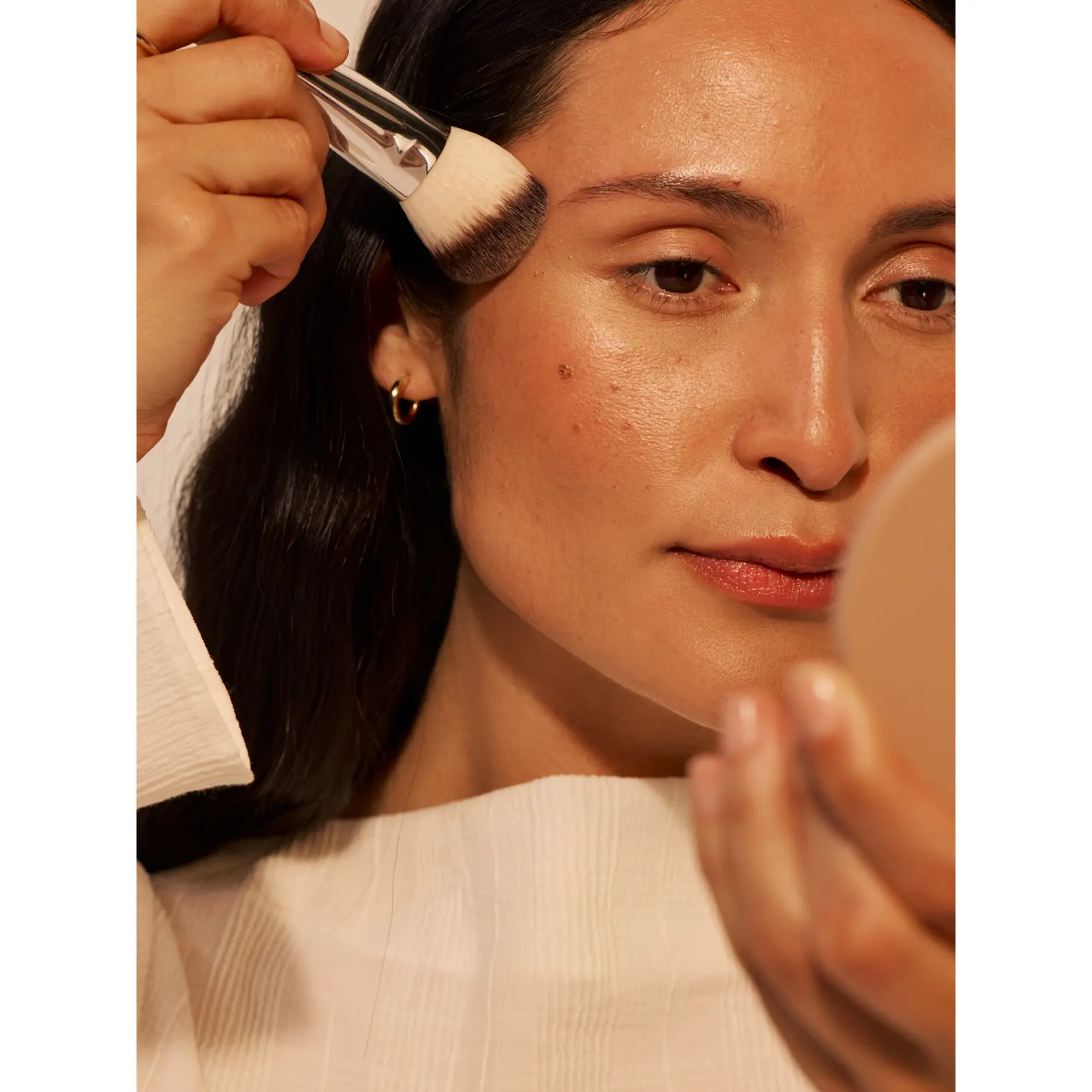 Add seamless radiance and dimension to skin with this cruelty-free sculpting brush. The angled vegan bristles flex with the curves of the face, blending creams and liquids to a softly diffused finish. Made with sustainably harvested wood, it's the perfect tool for Sunshift Cream Bronzer and Lightshift Cream Highlighter‚ but plays well with any cheek product.