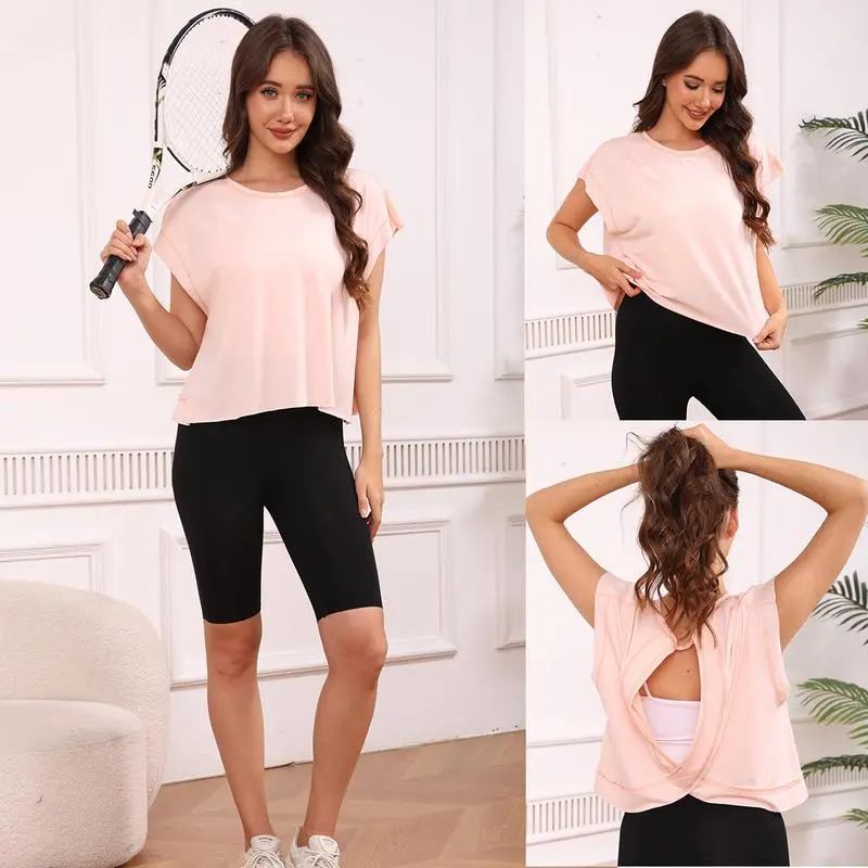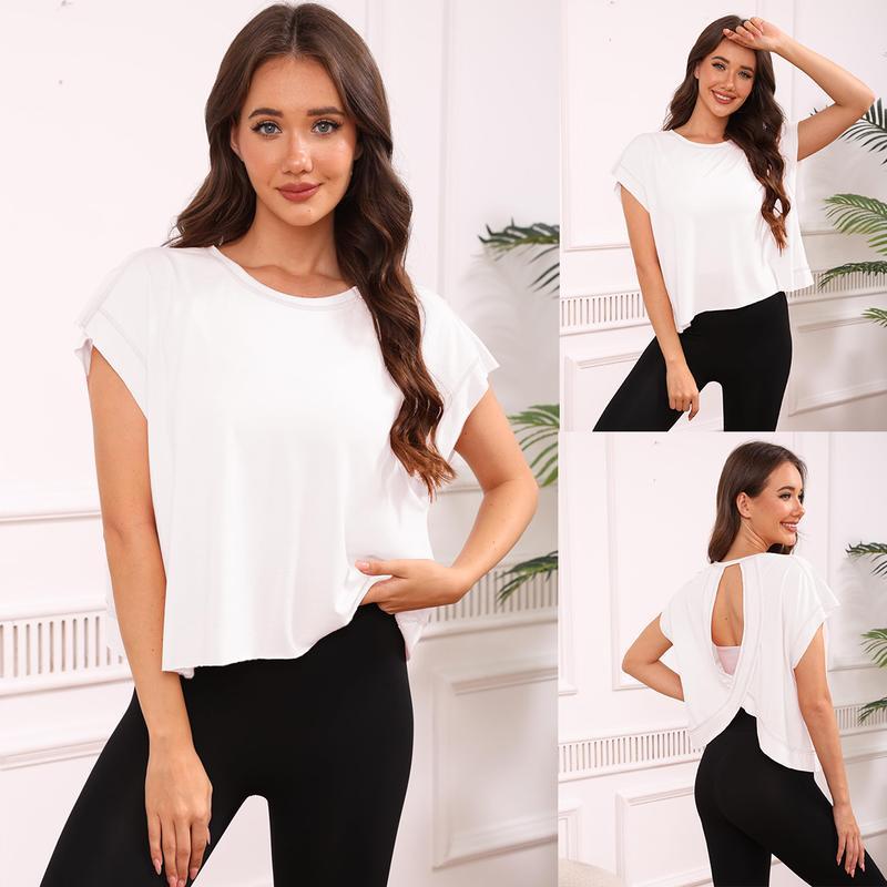 The short sleeve workout tops for women is made of a super soft blend fabric, offering a relaxed fit and slouchy silhouette. It effortlessly complements any clothing choice. This top ensures comfort and style for your active lifestyle.