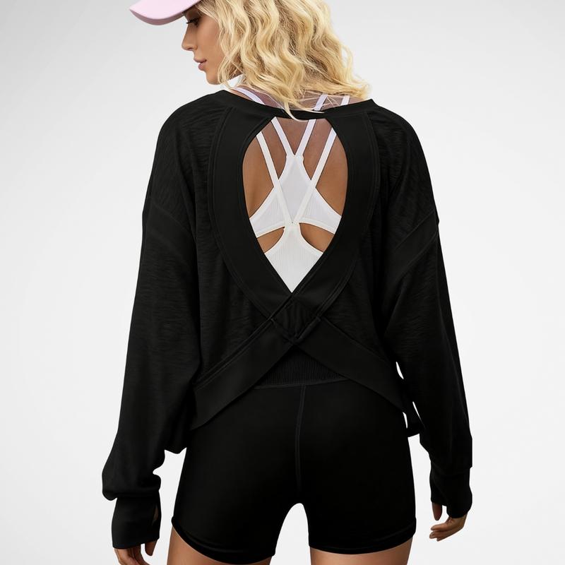 • Subtle cropped length and ribbed wrist details add delicate, feminine touches. • Ideal for pre- and post-workout wear, thanks to its breathable open back.