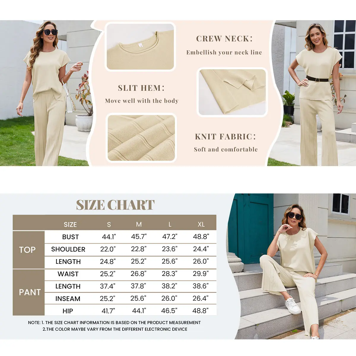 Excellent quality for this two piece set! Very comfortable, classic style. Easy to dress up or down by simply changing your accessories.
