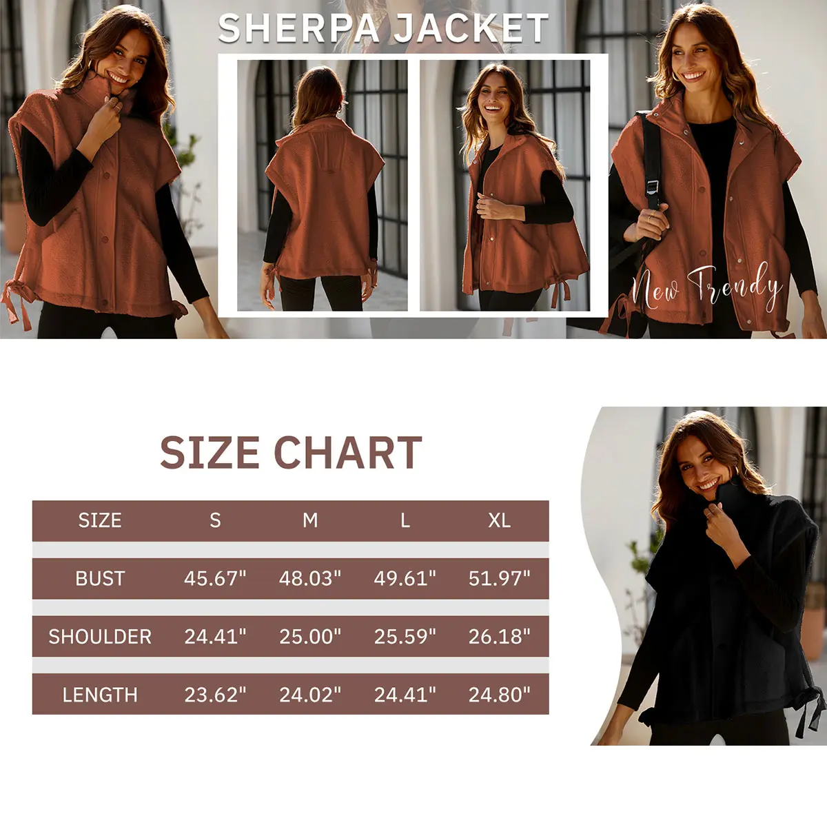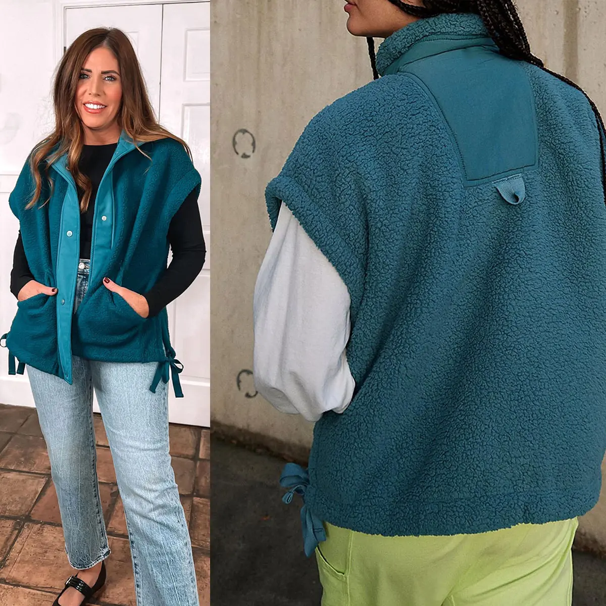 Materials: sleeveless sherpa jackets are made of soft fleece fabric, comfortable, soft and furry provides versatile warmth. All items are US Size, machine wash cold, do not bleach, hang to dry