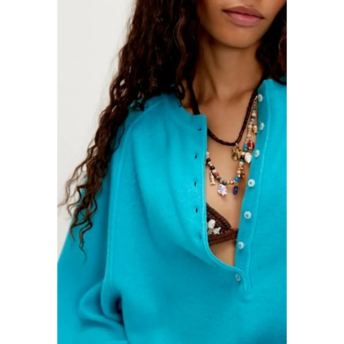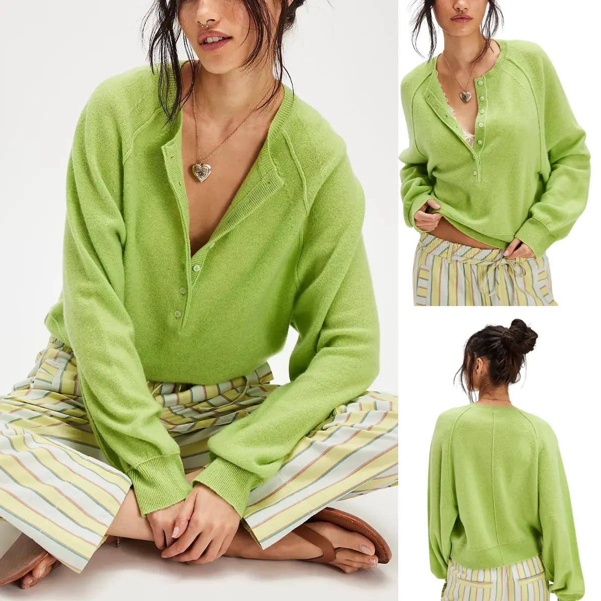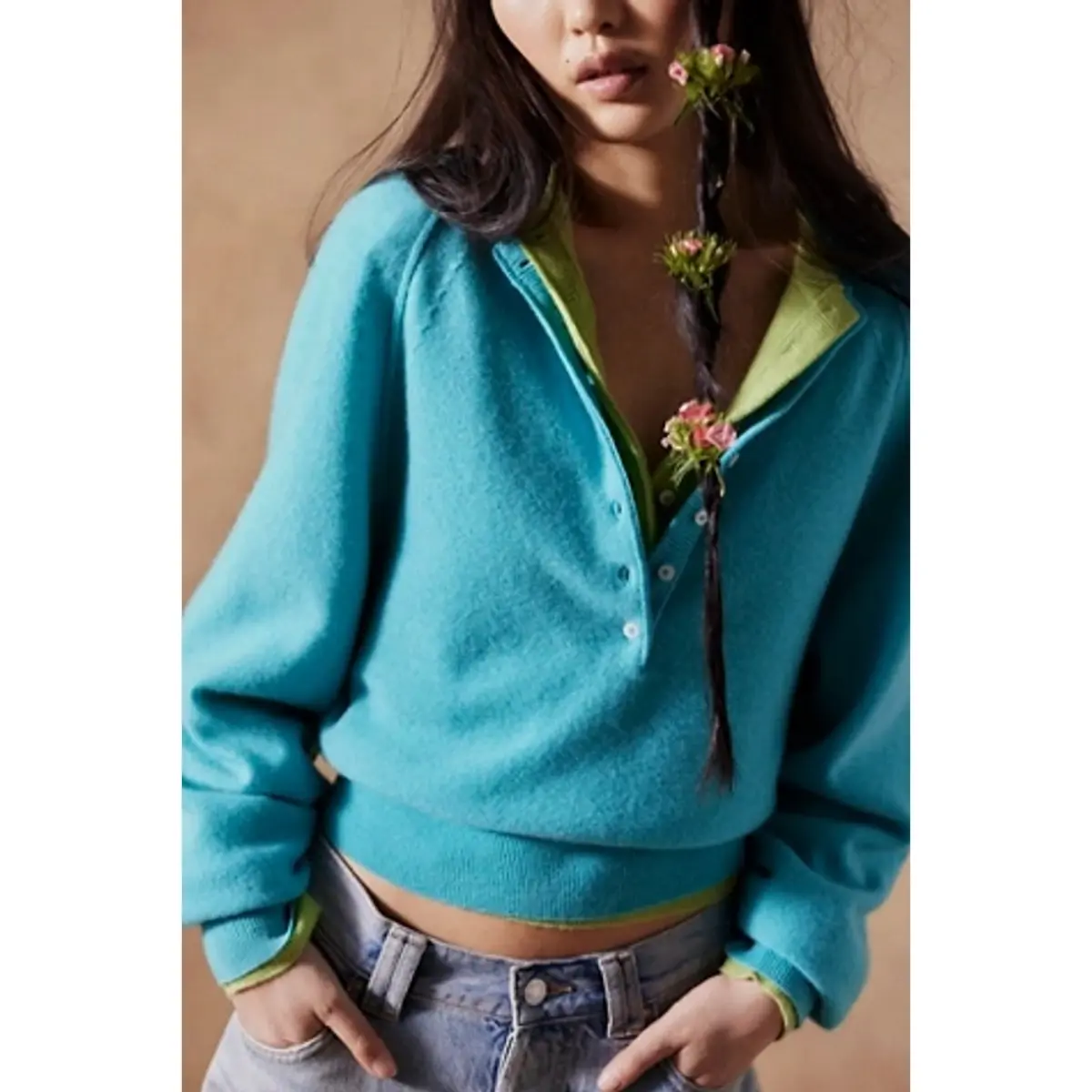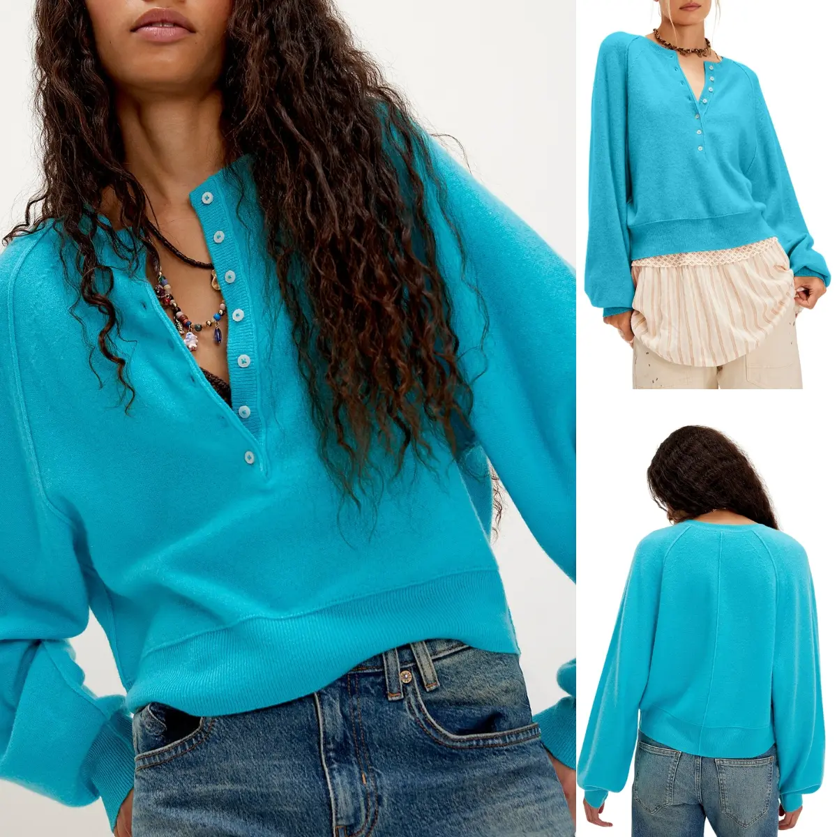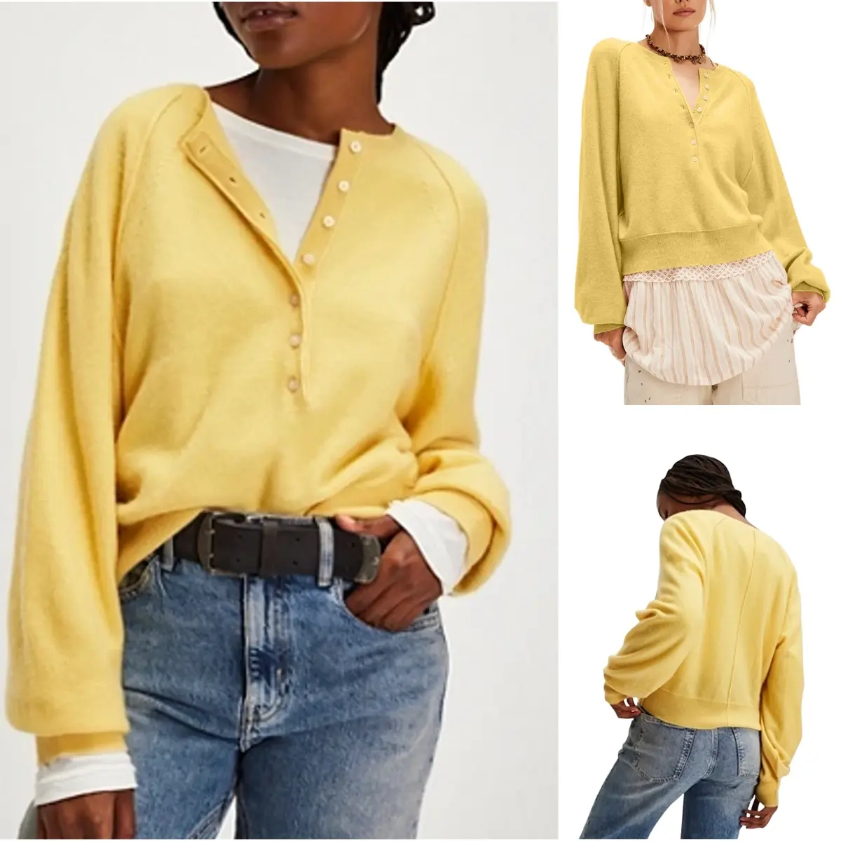 A classic Henley - neckline sweater, featuring a half - button placket. The round neck combined with the half - button design gives it a casual yet chic look. Stitching detailing at the shoulders delivers an elegant and fashionable finish. The long - sleeve cut is perfect for cooler fall days, providing both style and warmth.